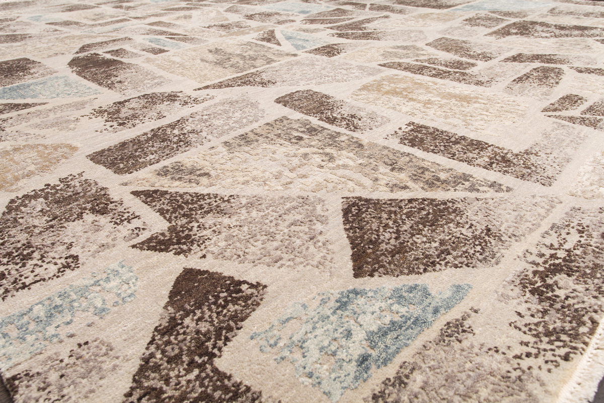 Дизайн ковров напоминает современные полотна художников-абстракционистов и производит столь же яркое и незабываемое впечатление в интерьере. Живописный эффект и необычная фактура зависят от выбора материала: натуральной шерсти, шёлка и от их сочетаний друг с другом. Ковры ткутся вручную в лучших мастерских Индии и Пакистана.