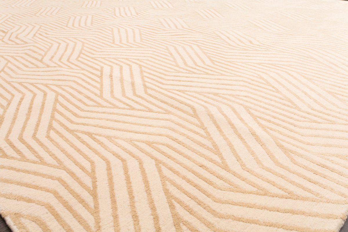 Крупные рисунки в виде линий и фигур на фактурной поверхности ковра превращаются в выразительные композиции. Они акцентируют на себе внимание и добавляют динамики в современный интерьер. Комбинации разных фигур и повторяющийся орнамент задают ритмическую основу пространству, привносят в него оригинальные оптические иллюзии.