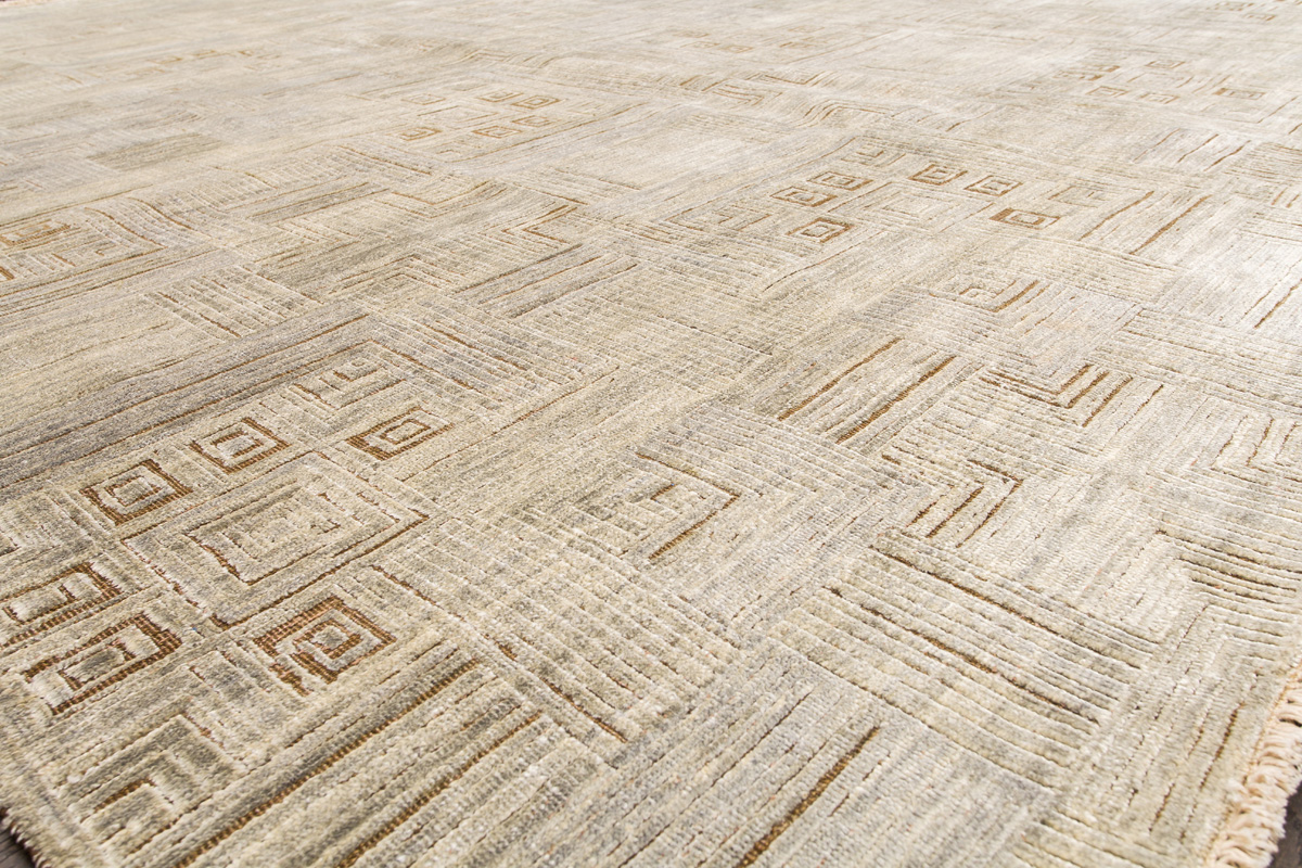 Дизайн ковров напоминает современные полотна художников-абстракционистов и производит столь же яркое и незабываемое впечатление в интерьере. Живописный эффект и необычная фактура зависят от выбора материала: натуральной шерсти, шёлка и от их сочетаний друг с другом. Ковры ткутся вручную в лучших мастерских Индии и Пакистана.