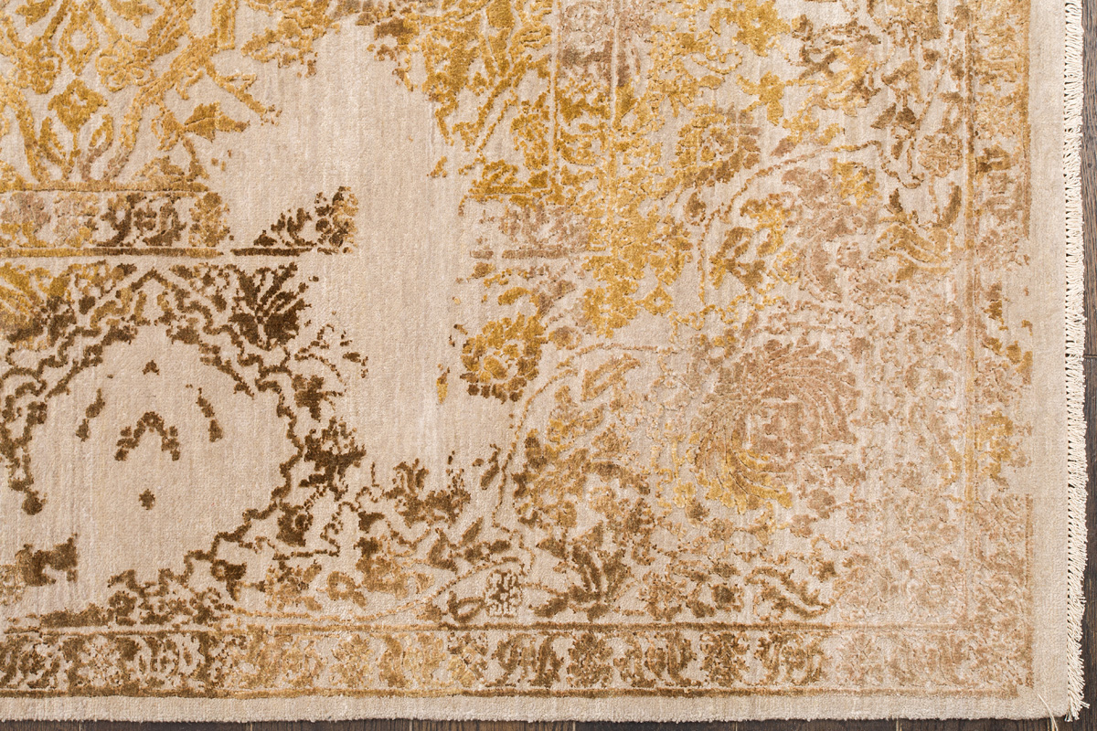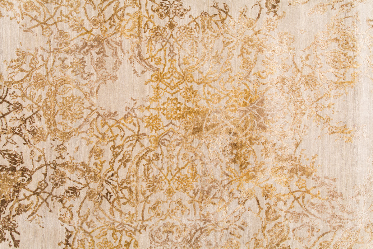 Время и природа — два главных стержня. Впечатление такое, что краски словно стёрлись, а если они и сохраняют яркость, то рисунок сохранился не весь, какие‑то фрагменты утрачены — такова типология этого столь актуального сегодня ковра ручной работы из коллекции illusion.