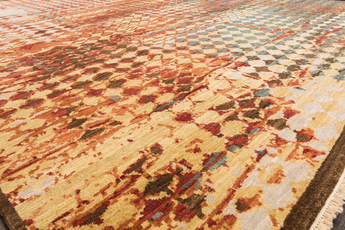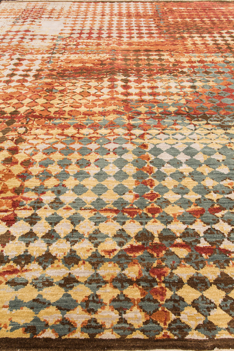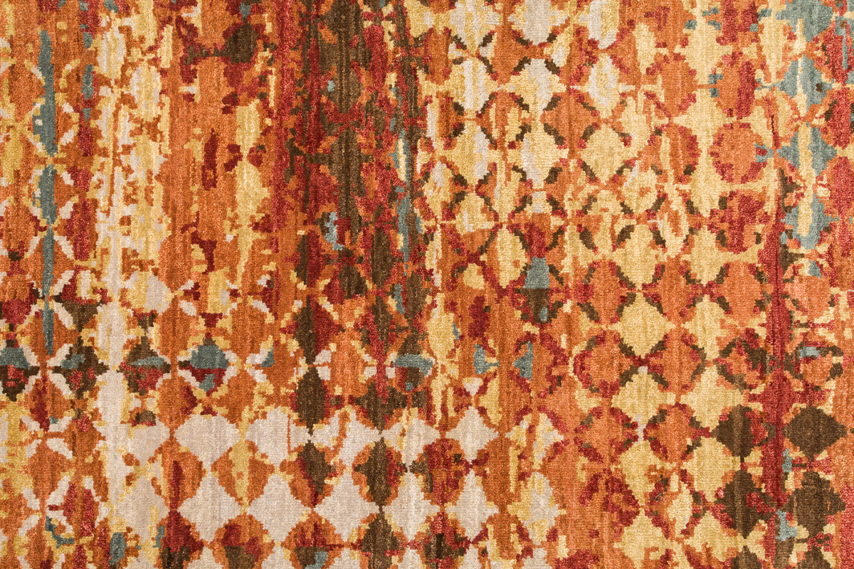 Дизайн ковров напоминает современные полотна художников-абстракционистов и производит столь же яркое и незабываемое впечатление в интерьере. Живописный эффект и необычная фактура зависят от выбора материала: натуральной шерсти, шёлка и от их сочетаний друг с другом. Ковры ткутся вручную в лучших мастерских Индии и Пакистана.