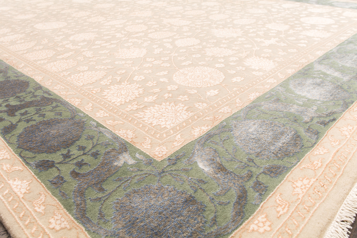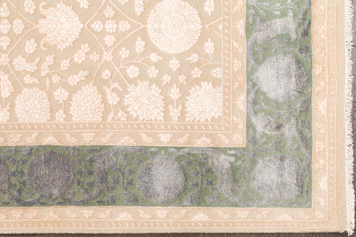 Более пяти веков назад в городе Агра зародилась знаменитая индийская школа ковроткачества, прославившаяся не меньше, чем расположенный здесь же Тадж-Махал. Мощное персидское влияние, помноженное на местный колорит, привело к появлению оригинальных орнаментов с богатыми растительными узорами — причудливым цветам, ветвям и листьям, разбросанным по всему полю ковра.