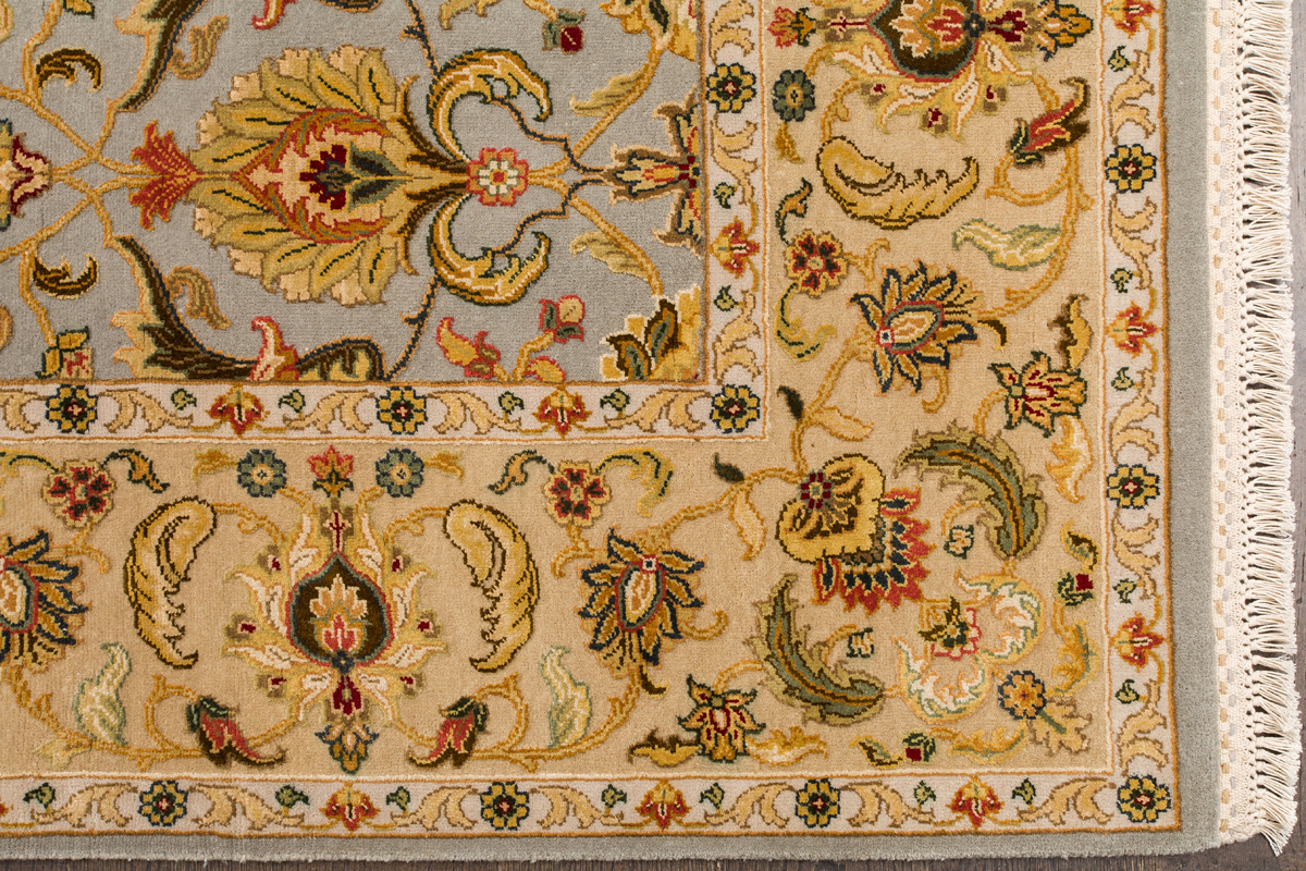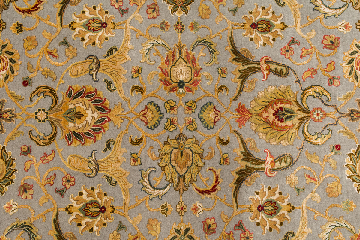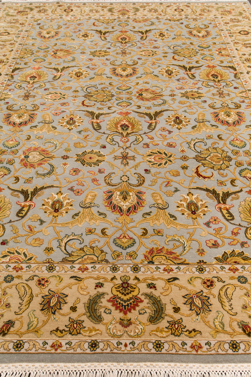 Более пяти веков назад в городе Агра зародилась знаменитая индийская школа ковроткачества, прославившаяся не меньше, чем расположенный здесь же Тадж-Махал. Мощное персидское влияние, помноженное на местный колорит, привело к появлению оригинальных орнаментов с богатыми растительными узорами — причудливым цветам, ветвям и листьям, разбросанным по всему полю ковра.