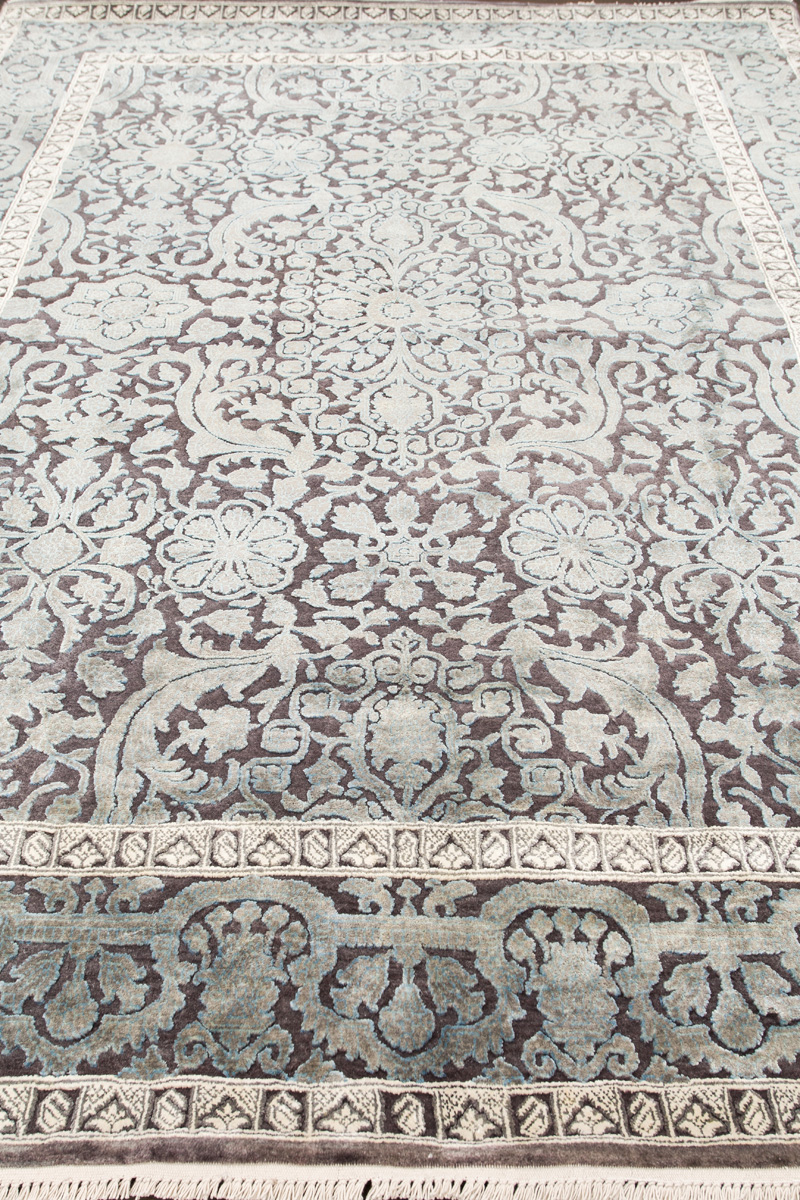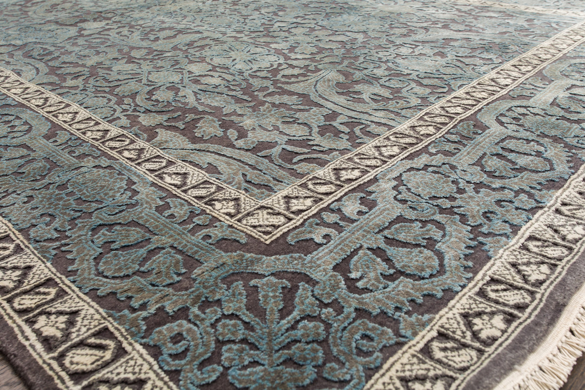 Каждый ковер в этой коллекции соткан вручную из шерсти и арт шёлка опытными индийскими мастерами.