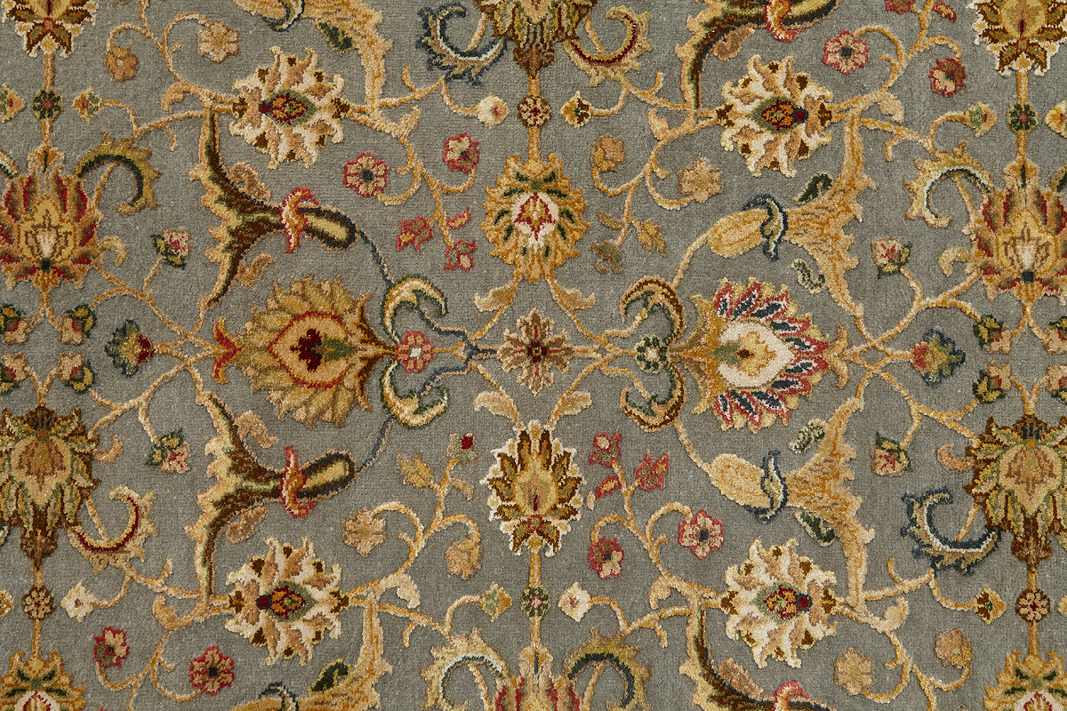Более пяти веков назад в городе Агра зародилась знаменитая индийская школа ковроткачества, прославившаяся не меньше, чем расположенный здесь же Тадж-Махал. Мощное персидское влияние, помноженное на местный колорит, привело к появлению оригинальных орнаментов с богатыми растительными узорами — причудливым цветам, ветвям и листьям, разбросанным по всему полю ковра.