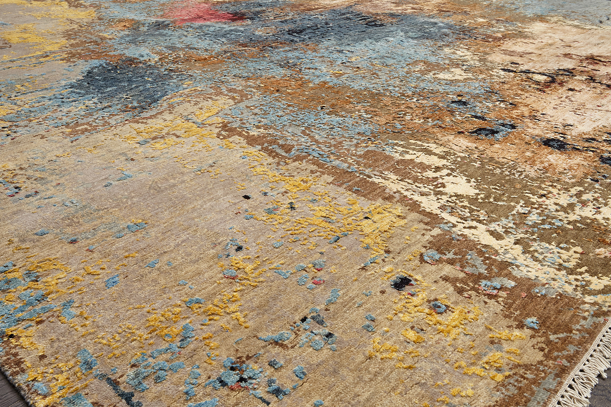 Дизайн ковров напоминает современные полотна художников-абстракционистов и производит столь же яркое и незабываемое впечатление в интерьере. Живописный эффект и необычная фактура зависят от выбора материала: натуральной шерсти, шёлка и от их сочетаний друг с другом. Ковры ткутся вручную в лучших мастерских Индии и Пакистана.