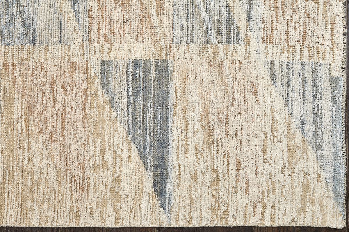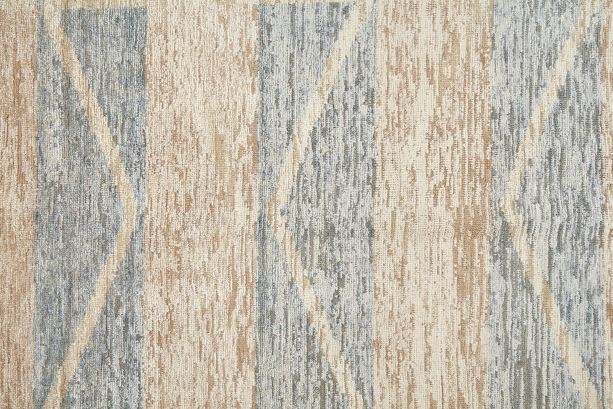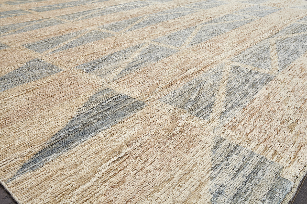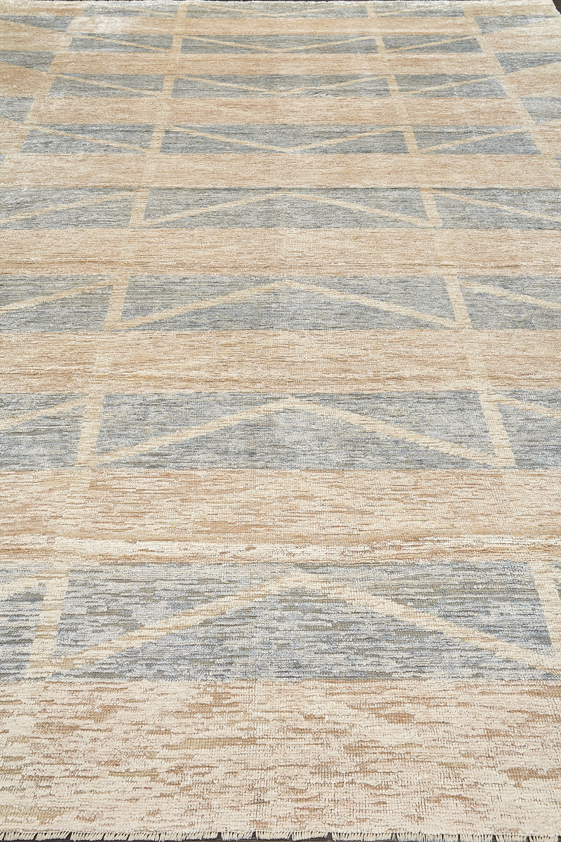 Крупные рисунки в виде линий и фигур на фактурной поверхности ковра превращаются в выразительные композиции. Они акцентируют на себе внимание и добавляют динамики в современный интерьер. Комбинации разных фигур и повторяющийся орнамент задают ритмическую основу пространству, привносят в него оригинальные оптические иллюзии.