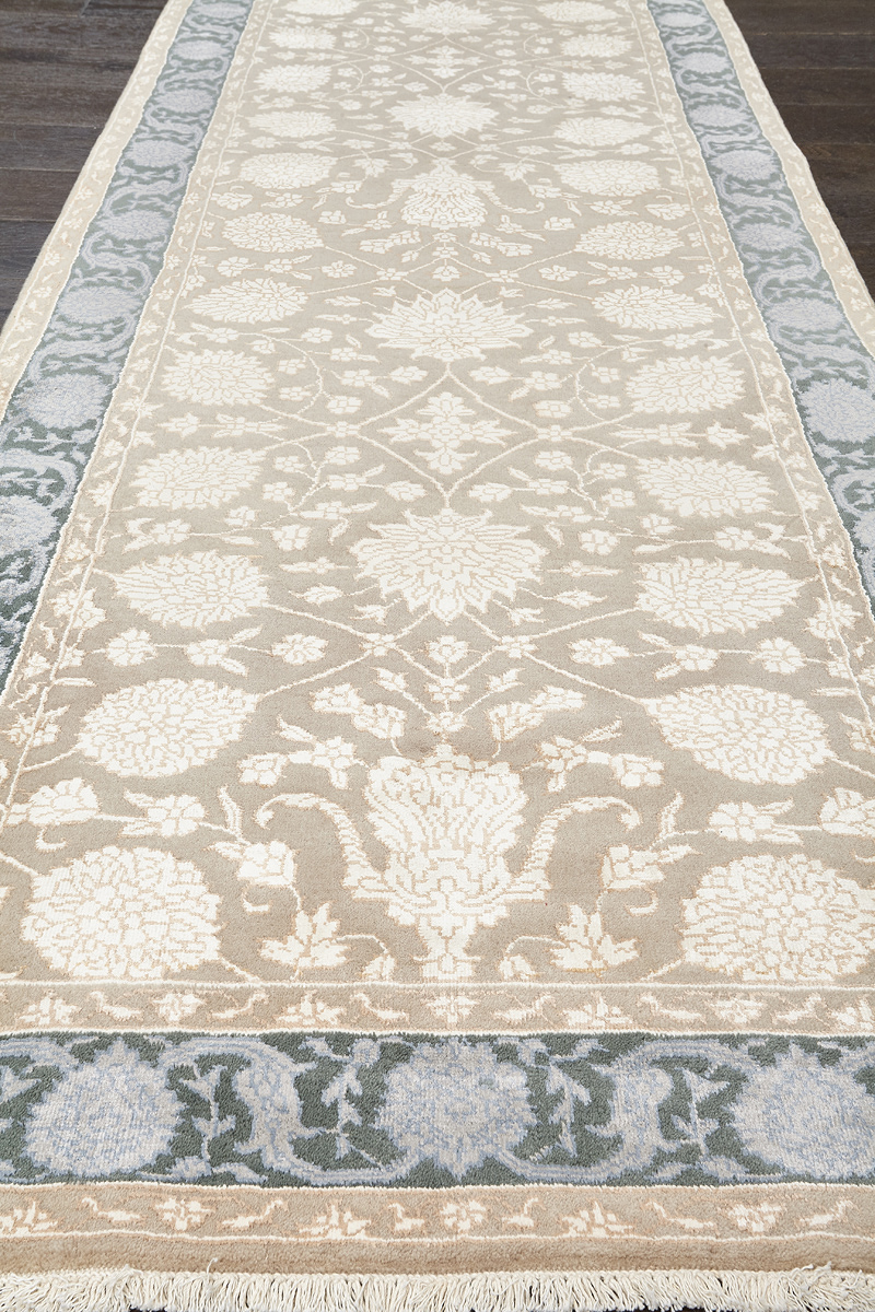 Каждый ковер в этой коллекции соткан вручную из шерсти и арт шёлка опытными индийскими мастерами.