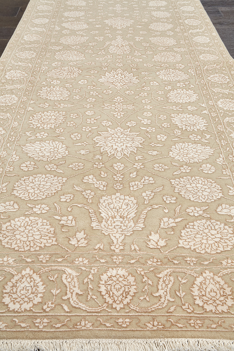 Каждый ковер в этой коллекции соткан вручную из шерсти и арт шёлка опытными индийскими мастерами.