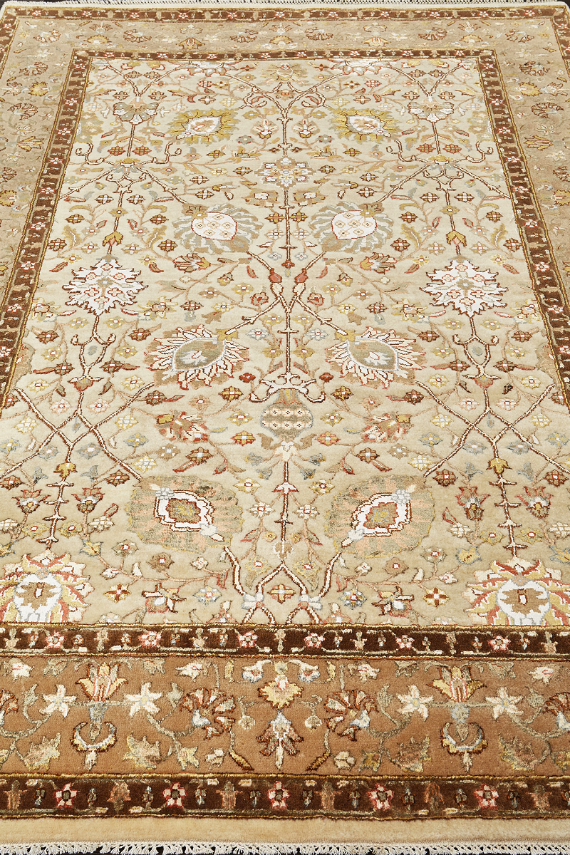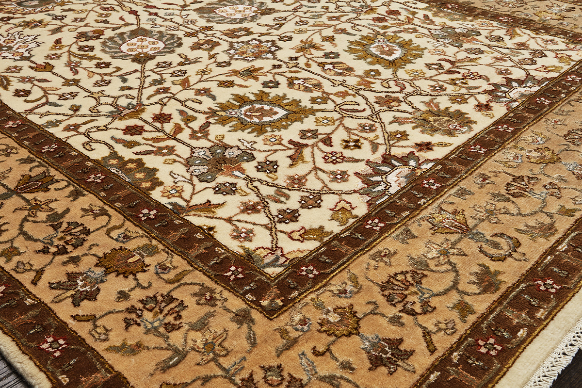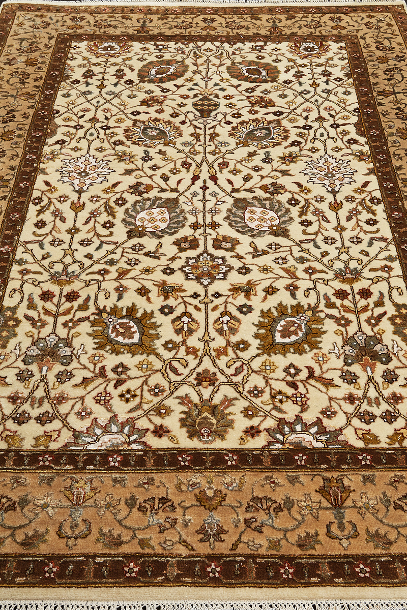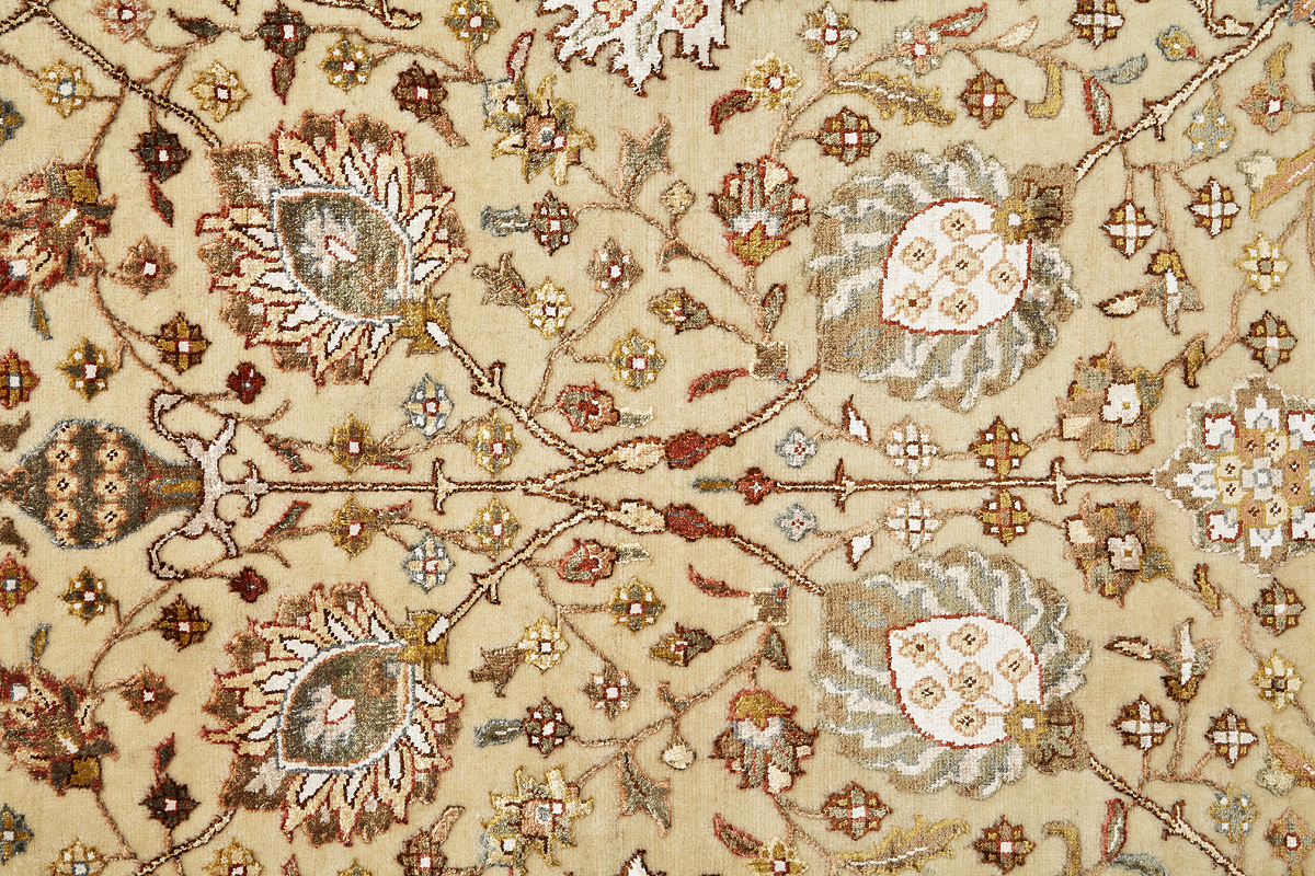 Более пяти веков назад в городе Агра зародилась знаменитая индийская школа ковроткачества, прославившаяся не меньше, чем расположенный здесь же Тадж-Махал. Мощное персидское влияние, помноженное на местный колорит, привело к появлению оригинальных орнаментов с богатыми растительными узорами — причудливым цветам, ветвям и листьям, разбросанным по всему полю ковра.