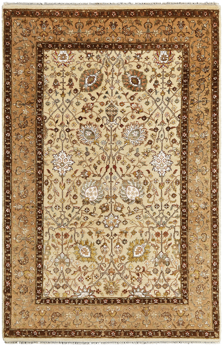 Каждый ковер в этой коллекции соткан вручную из шерсти и арт шёлка опытными индийскими мастерами.