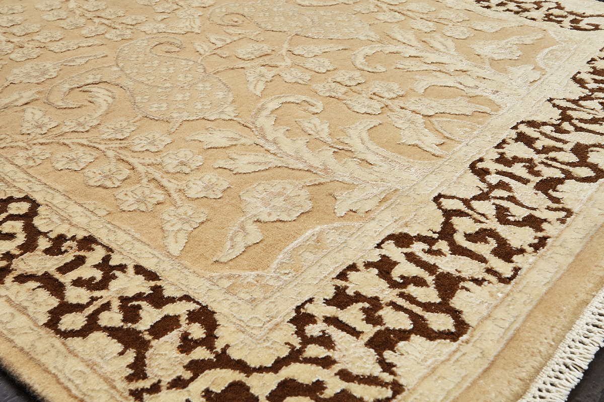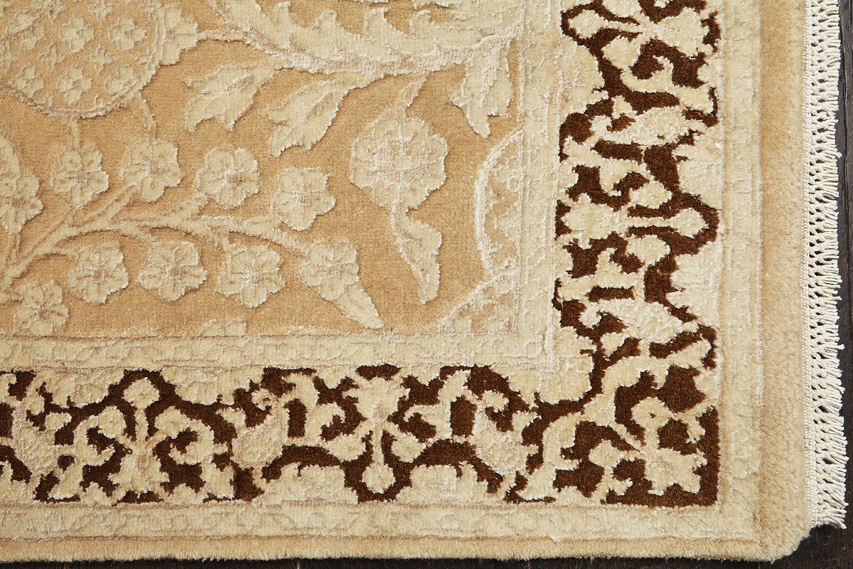 Каждый ковер в этой коллекции соткан вручную из шерсти и арт шёлка опытными индийскими мастерами.