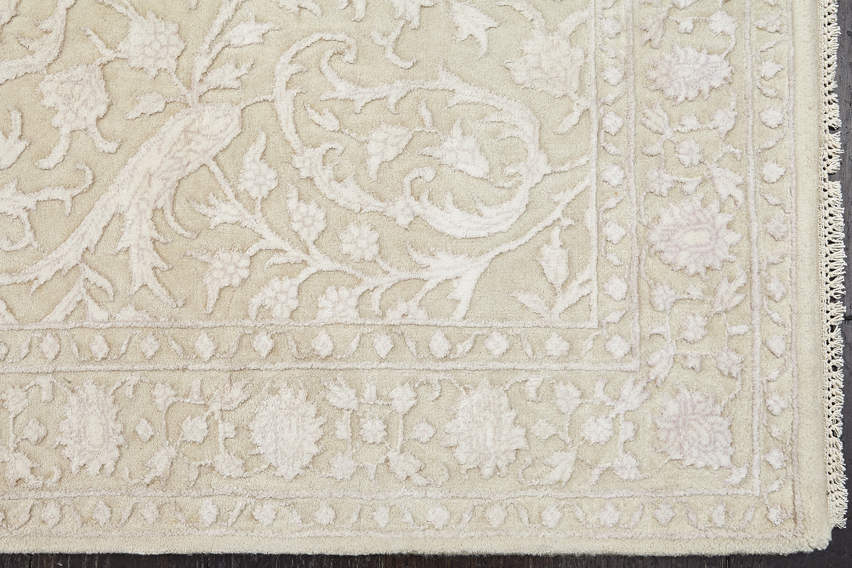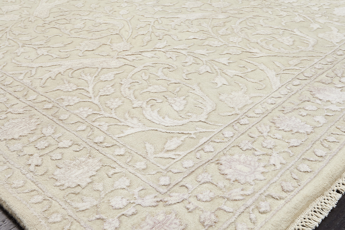 Каждый ковер в этой коллекции соткан вручную из шерсти и арт шёлка опытными индийскими мастерами.