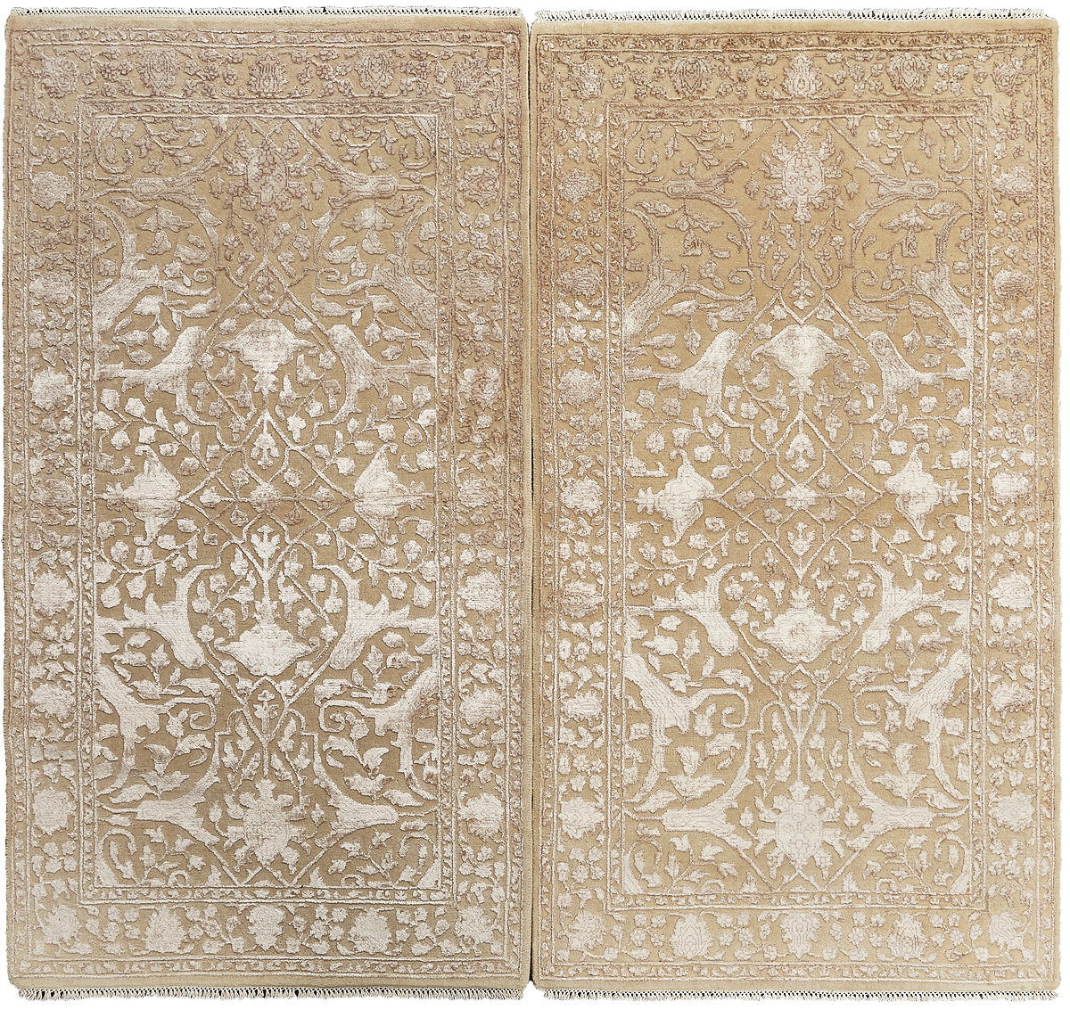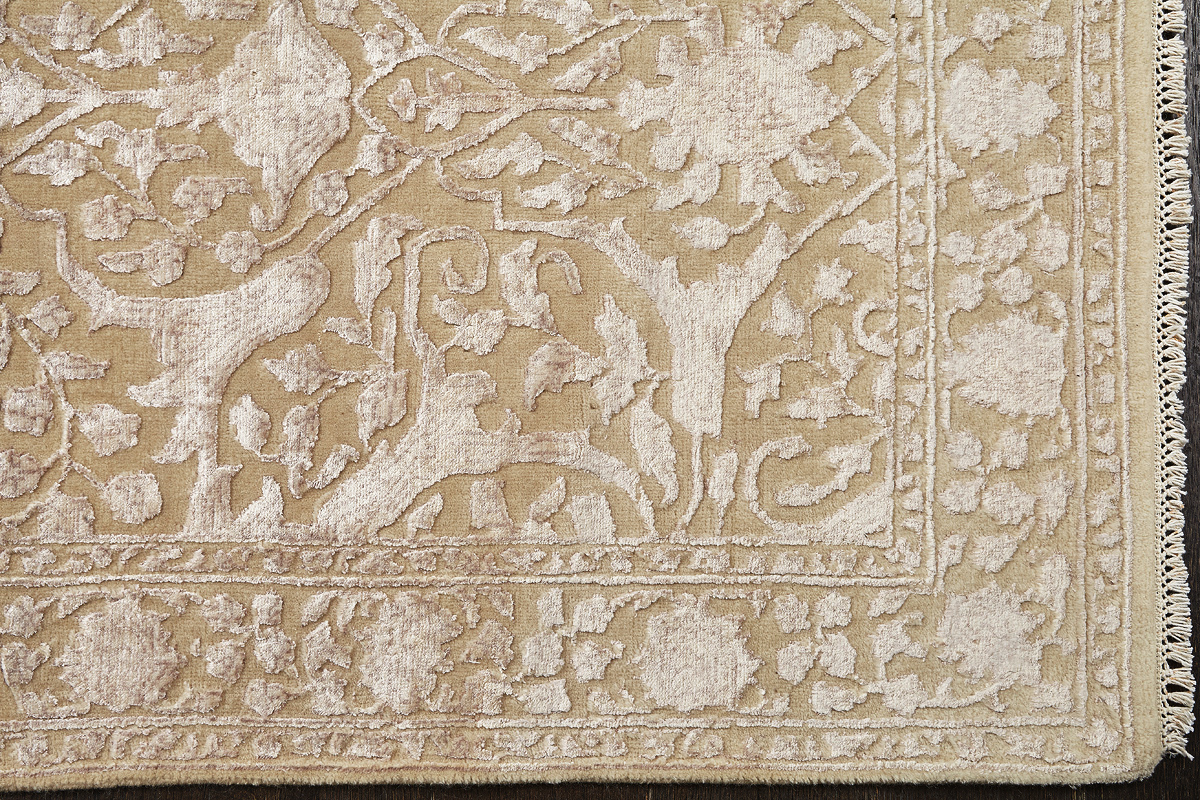 Каждый ковер в этой коллекции соткан вручную из шерсти и арт шёлка опытными индийскими мастерами.