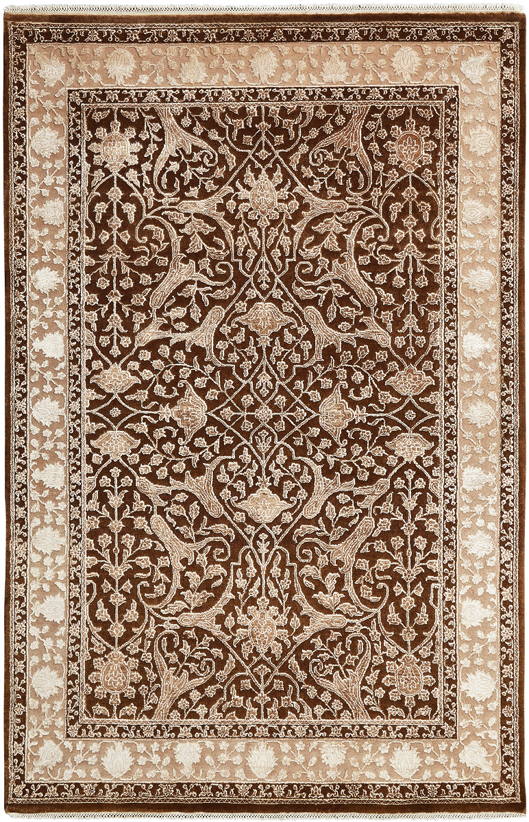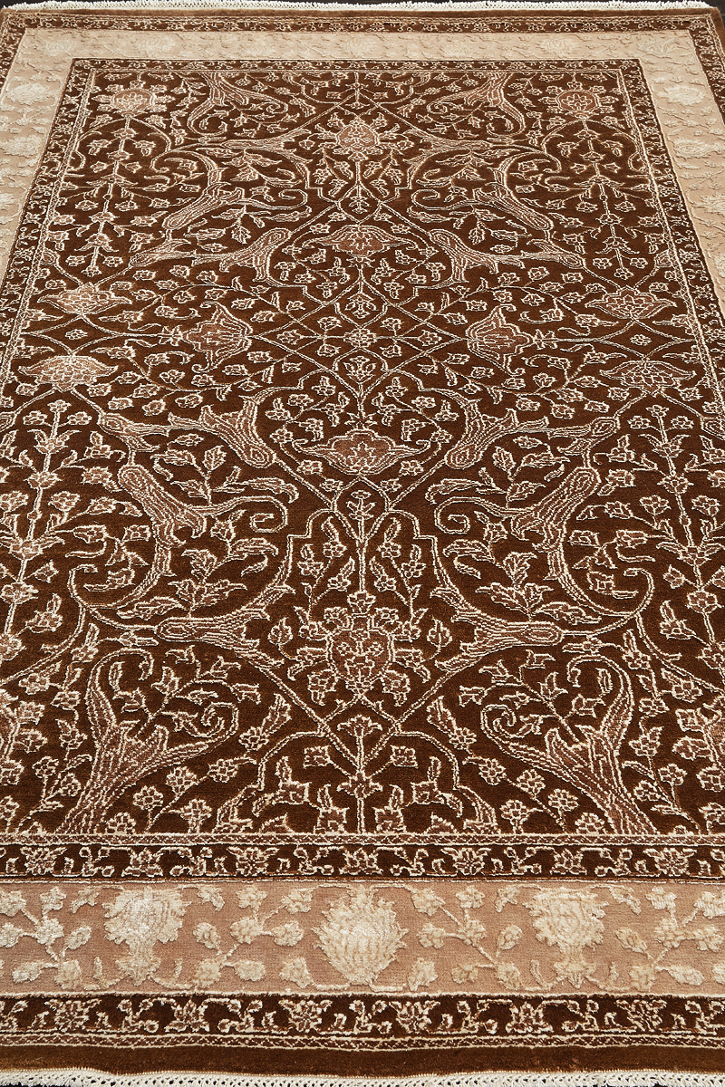 Более пяти веков назад в городе Агра зародилась знаменитая индийская школа ковроткачества, прославившаяся не меньше, чем расположенный здесь же Тадж-Махал. Мощное персидское влияние, помноженное на местный колорит, привело к появлению оригинальных орнаментов с богатыми растительными узорами — причудливым цветам, ветвям и листьям, разбросанным по всему полю ковра.