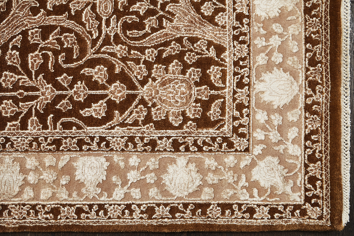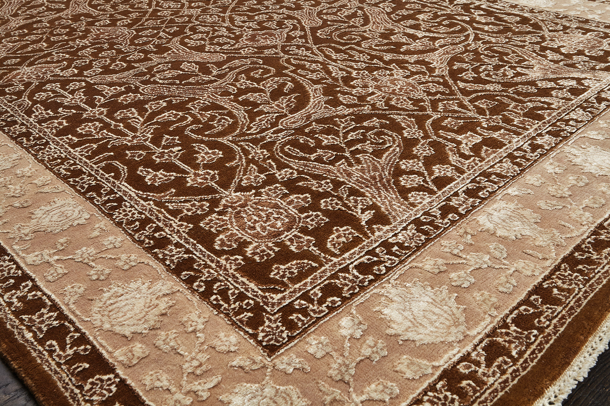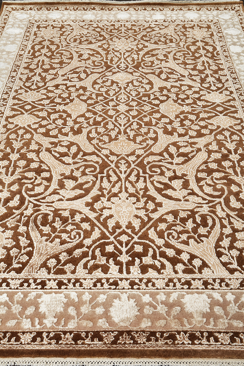 Каждый ковер в этой коллекции соткан вручную из шерсти и арт шёлка опытными индийскими мастерами.