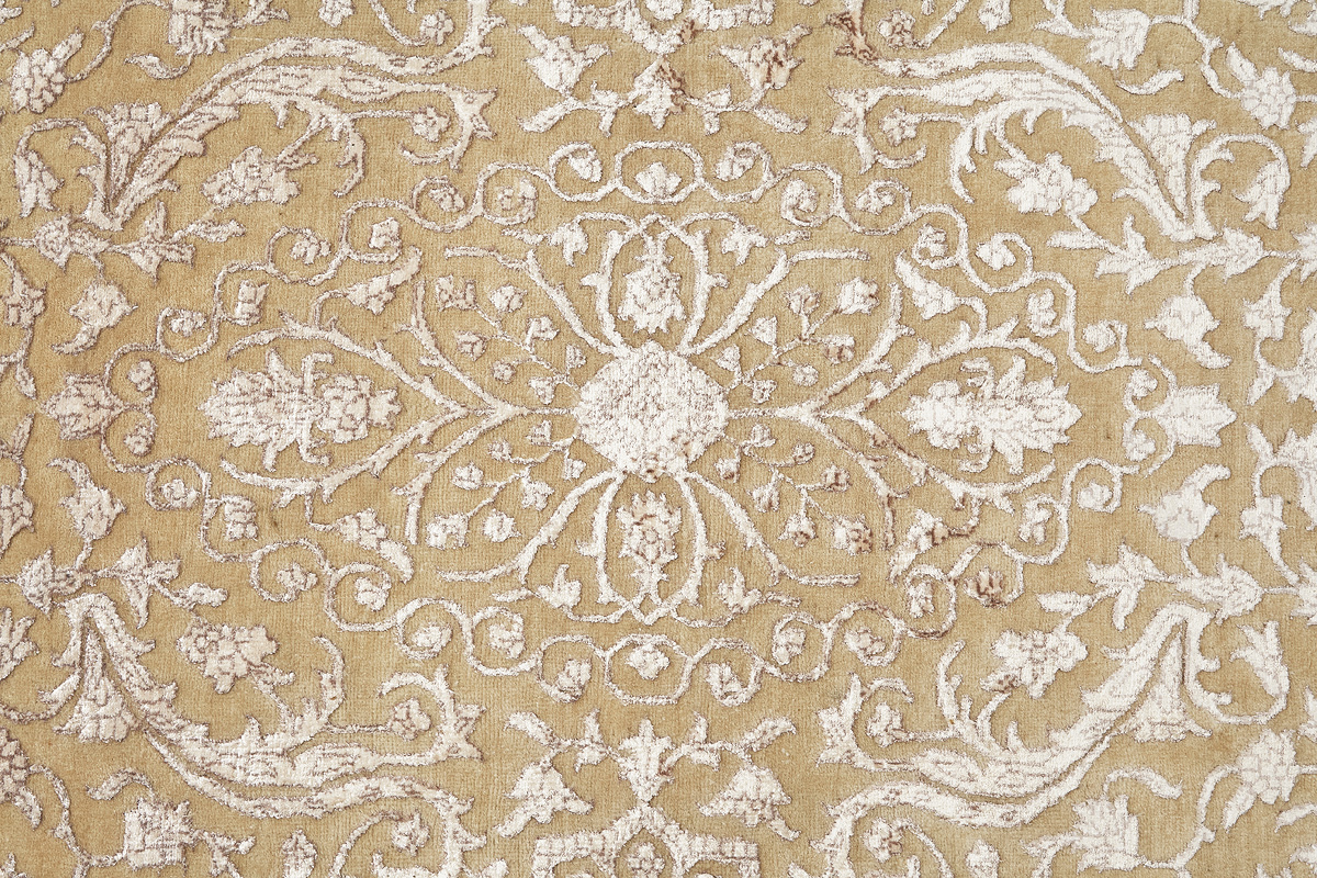 Каждый ковер в этой коллекции соткан вручную из шерсти и арт шёлка опытными индийскими мастерами.