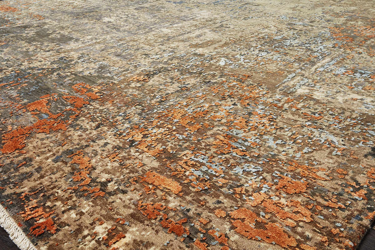 Дизайн ковров напоминает современные полотна художников-абстракционистов и производит столь же яркое и незабываемое впечатление в интерьере. Живописный эффект и необычная фактура зависят от выбора материала: натуральной шерсти, шёлка и от их сочетаний друг с другом. Ковры ткутся вручную в лучших мастерских Индии и Пакистана.