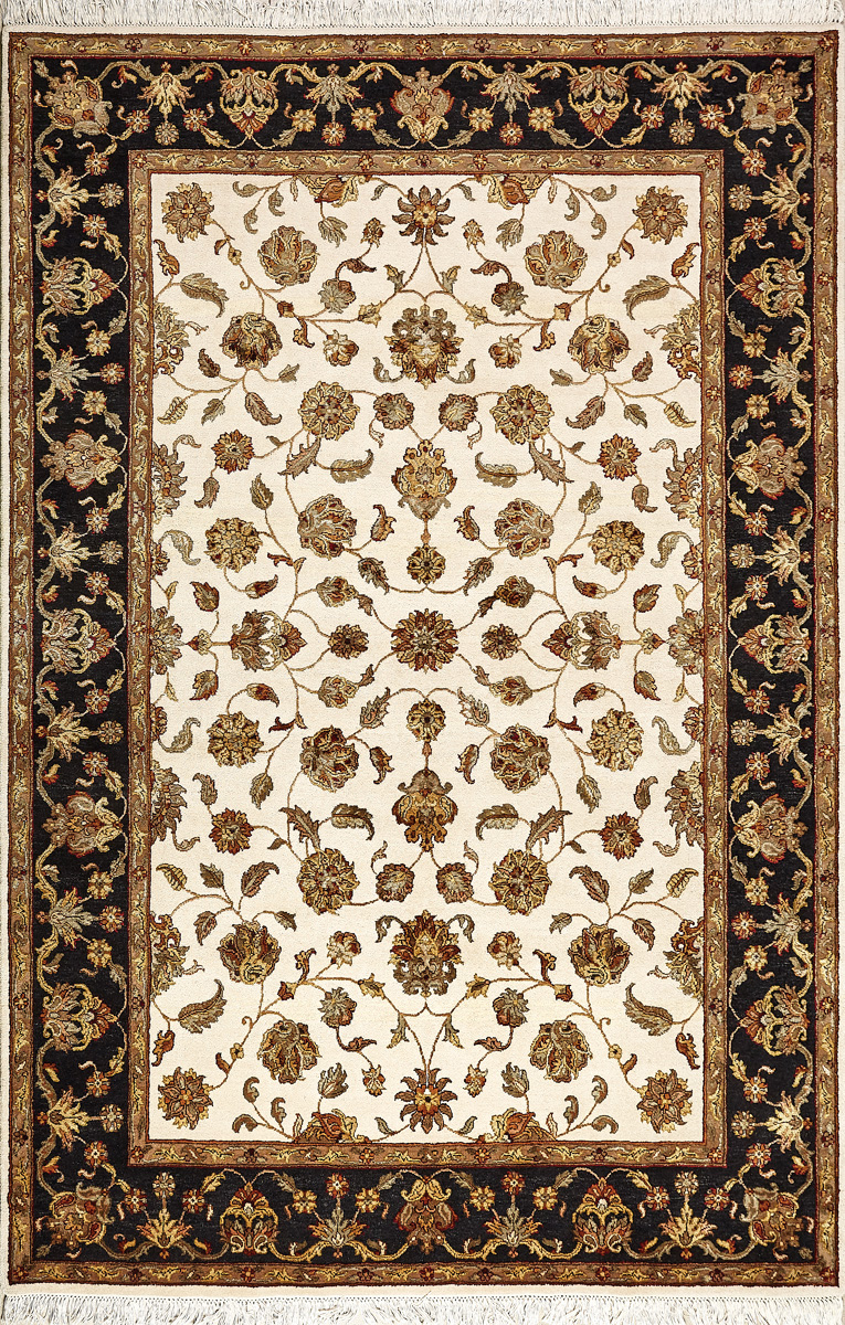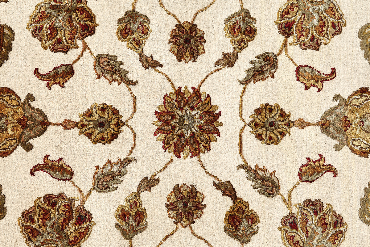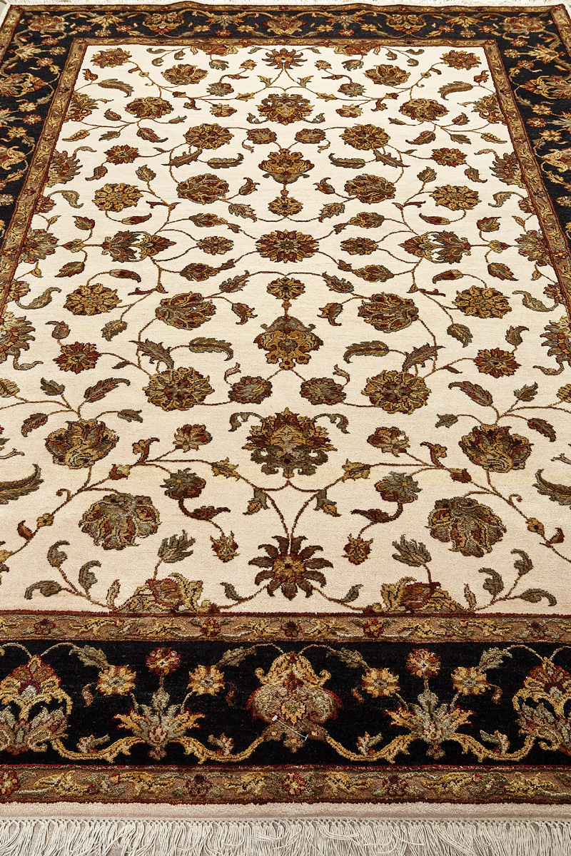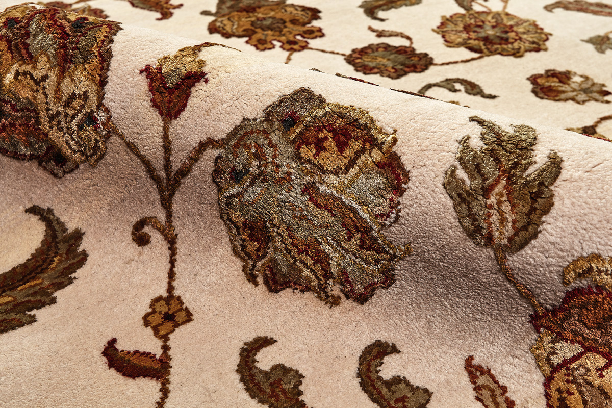 Более пяти веков назад в городе Агра зародилась знаменитая индийская школа ковроткачества, прославившаяся не меньше, чем расположенный здесь же Тадж-Махал. Мощное персидское влияние, помноженное на местный колорит, привело к появлению оригинальных орнаментов с богатыми растительными узорами — причудливым цветам, ветвям и листьям, разбросанным по всему полю ковра.