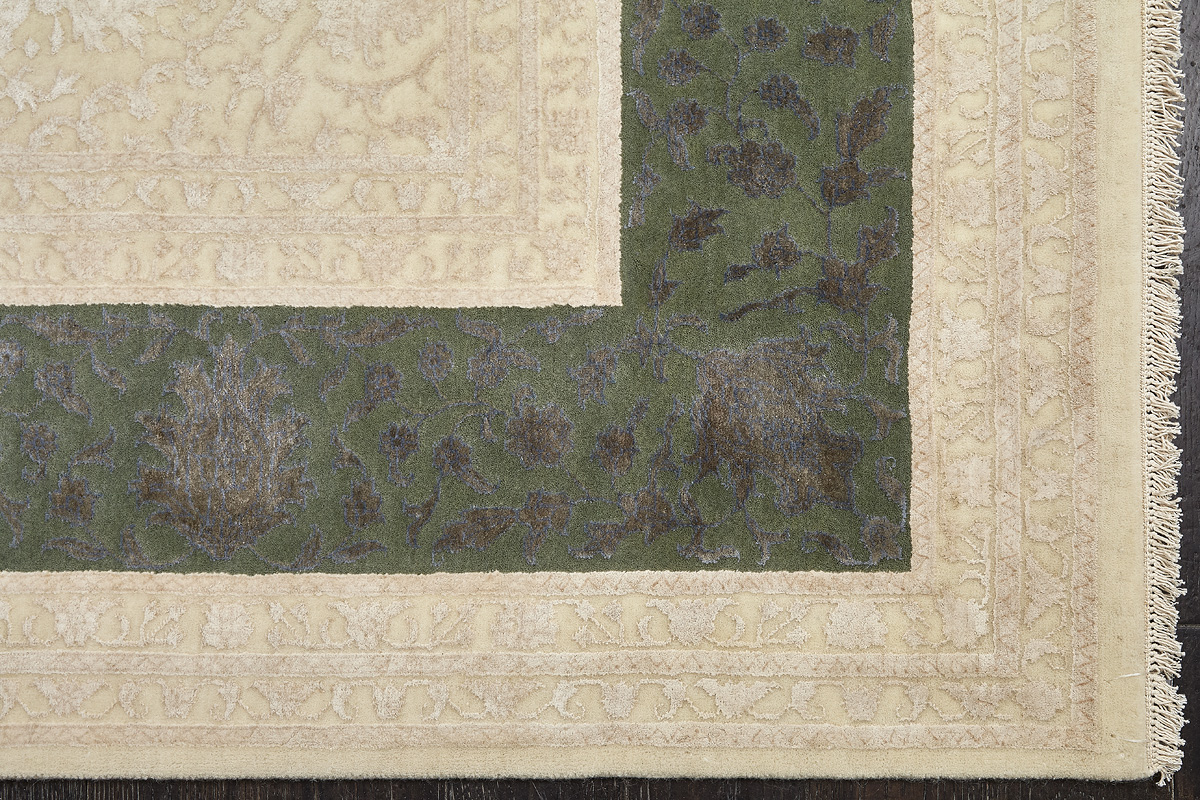Каждый ковер в этой коллекции соткан вручную из шерсти и арт шёлка опытными индийскими мастерами.
