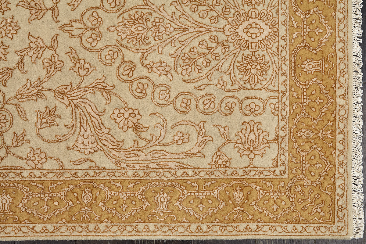 Каждый ковер в этой коллекции соткан вручную из шерсти и арт шёлка опытными индийскими мастерами.