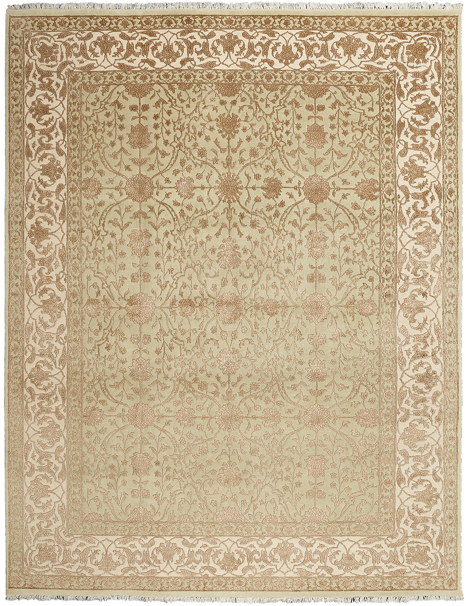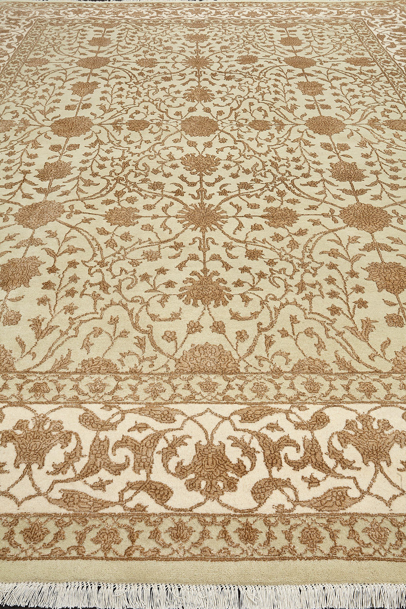 Более пяти веков назад в городе Агра зародилась знаменитая индийская школа ковроткачества, прославившаяся не меньше, чем расположенный здесь же Тадж-Махал. Мощное персидское влияние, помноженное на местный колорит, привело к появлению оригинальных орнаментов с богатыми растительными узорами — причудливым цветам, ветвям и листьям, разбросанным по всему полю ковра.