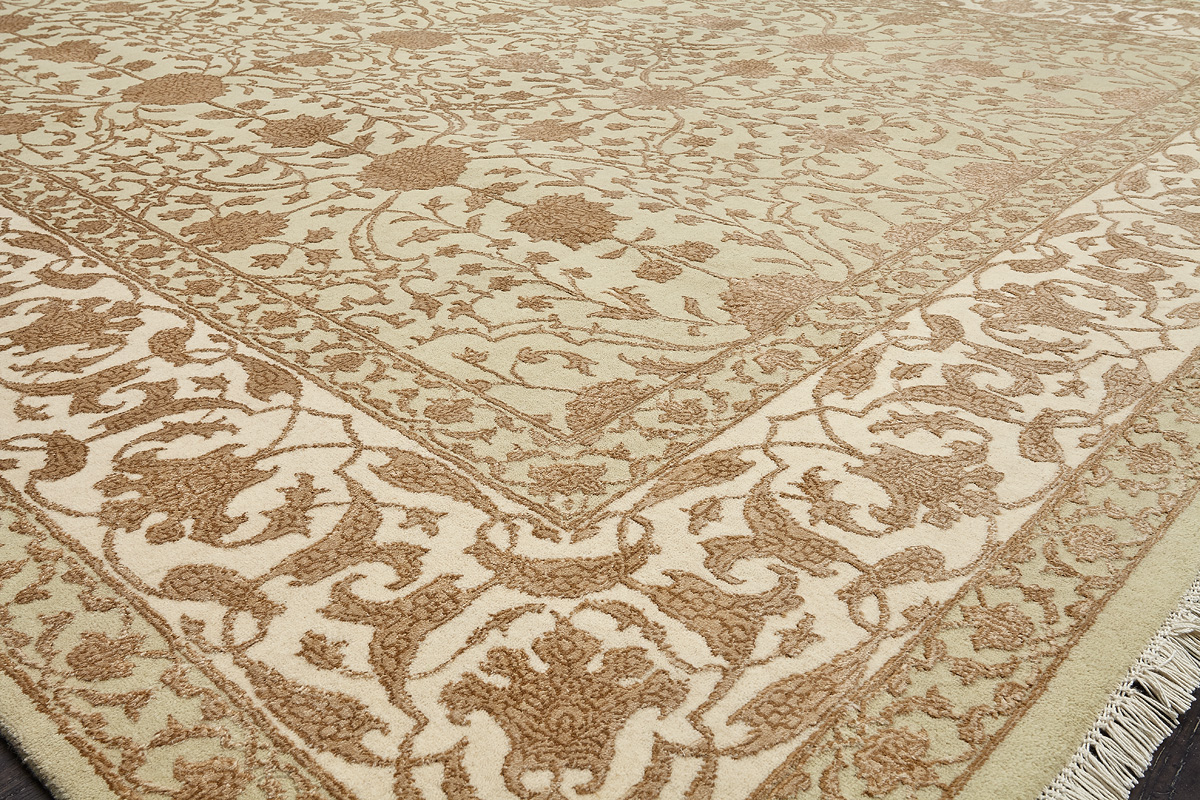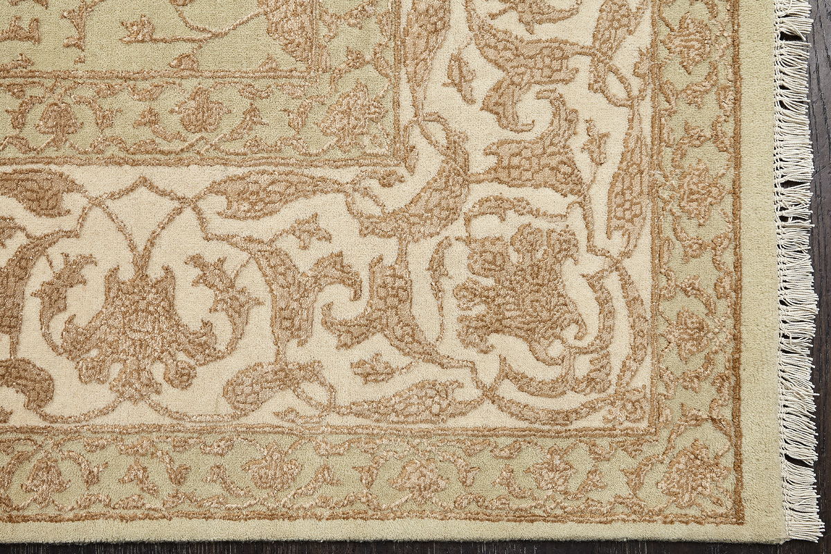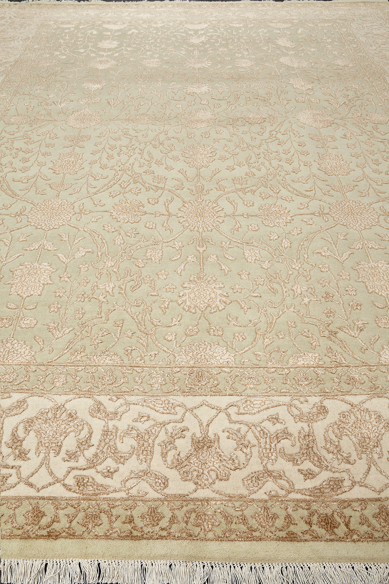 Каждый ковер в этой коллекции соткан вручную из шерсти и арт шёлка опытными индийскими мастерами.