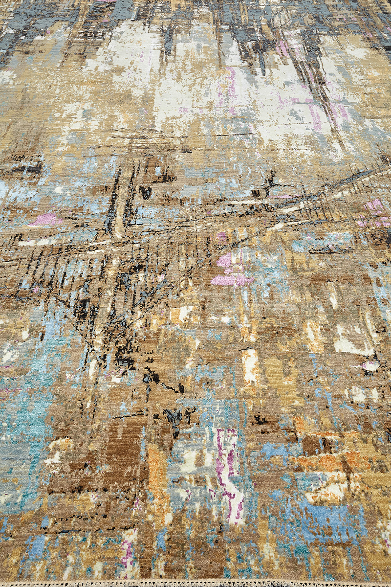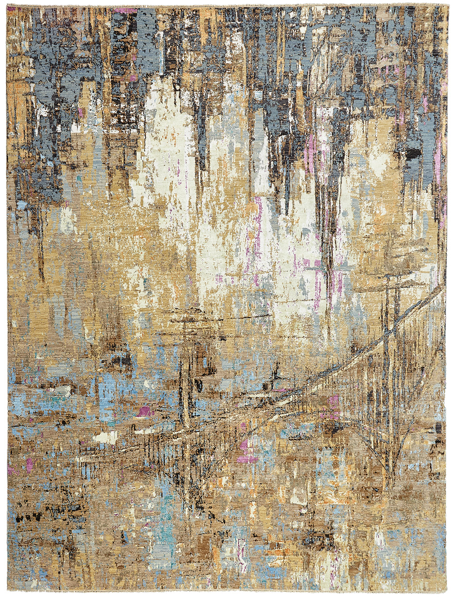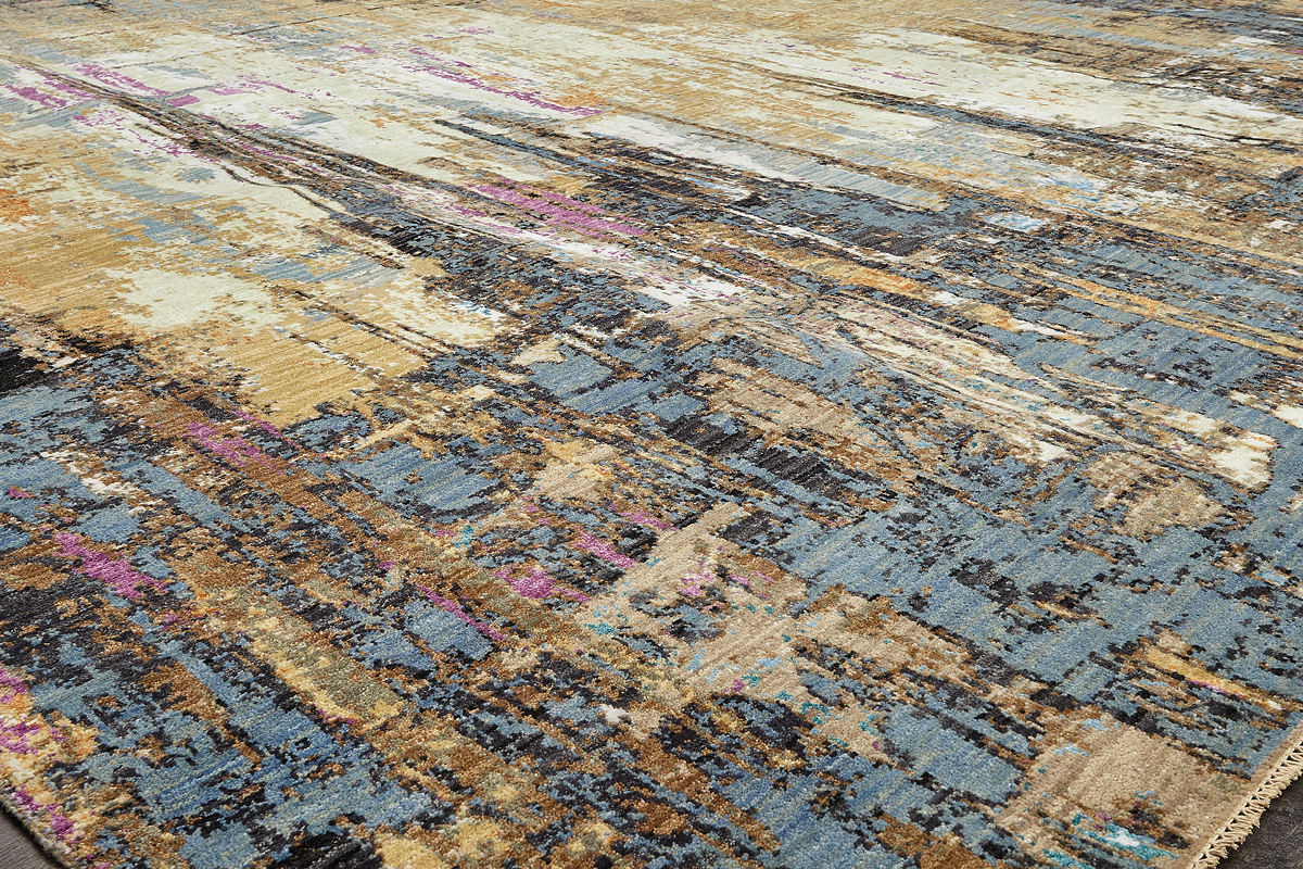 Дизайн ковров напоминает современные полотна художников-абстракционистов и производит столь же яркое и незабываемое впечатление в интерьере. Живописный эффект и необычная фактура зависят от выбора материала: натуральной шерсти, шёлка и от их сочетаний друг с другом. Ковры ткутся вручную в лучших мастерских Индии и Пакистана.