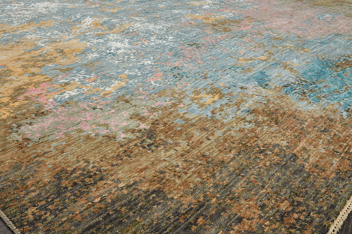Дизайн ковров напоминает современные полотна художников-абстракционистов и производит столь же яркое и незабываемое впечатление в интерьере. Живописный эффект и необычная фактура зависят от выбора материала: натуральной шерсти, шёлка и от их сочетаний друг с другом. Ковры ткутся вручную в лучших мастерских Индии и Пакистана.