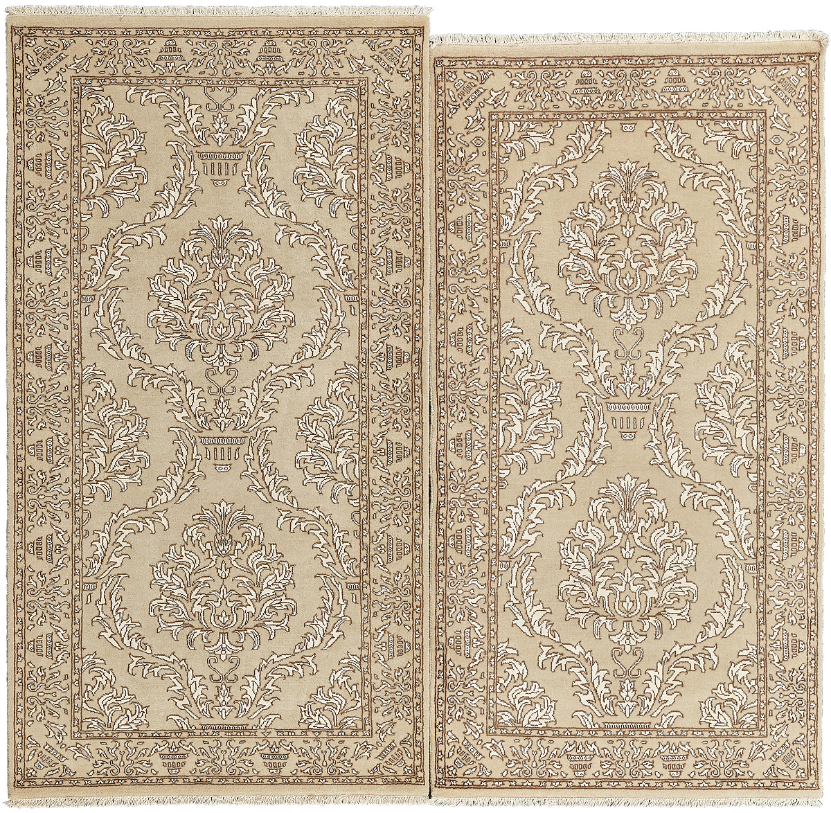 Более пяти веков назад в городе Агра зародилась знаменитая индийская школа ковроткачества, прославившаяся не меньше, чем расположенный здесь же Тадж-Махал. Мощное персидское влияние, помноженное на местный колорит, привело к появлению оригинальных орнаментов с богатыми растительными узорами — причудливым цветам, ветвям и листьям, разбросанным по всему полю ковра.