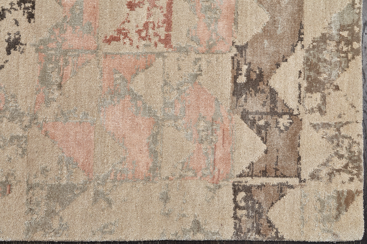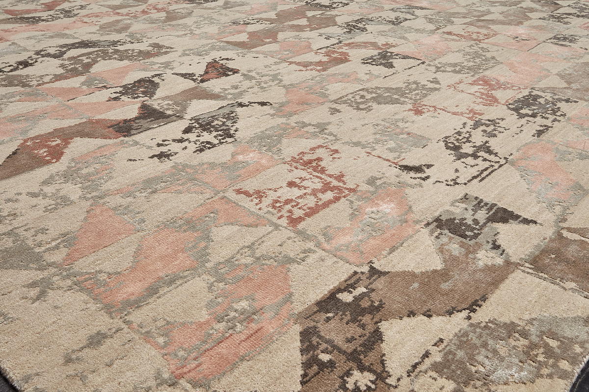 Дизайн ковров напоминает современные полотна художников-абстракционистов и производит столь же яркое и незабываемое впечатление в интерьере. Живописный эффект и необычная фактура зависят от выбора материала: натуральной шерсти, шёлка и от их сочетаний друг с другом. Ковры ткутся вручную в лучших мастерских Индии и Пакистана.
