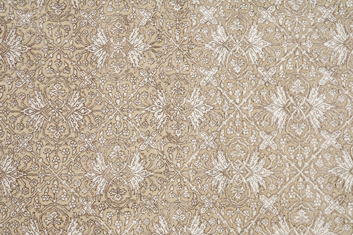 Каждый ковер в этой коллекции соткан вручную из шерсти и арт шёлка опытными индийскими мастерами.