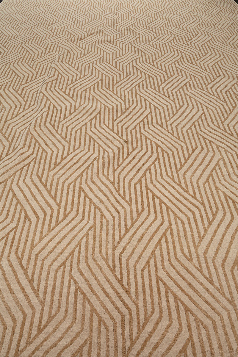Крупные рисунки в виде линий и фигур на фактурной поверхности ковра превращаются в выразительные композиции. Они акцентируют на себе внимание и добавляют динамики в современный интерьер. Комбинации разных фигур и повторяющийся орнамент задают ритмическую основу пространству, привносят в него оригинальные оптические иллюзии.