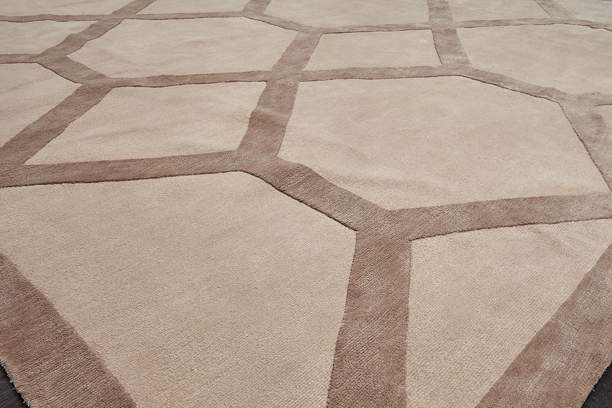 Крупные рисунки в виде линий и фигур на фактурной поверхности ковра превращаются в выразительные композиции. Они акцентируют на себе внимание и добавляют динамики в современный интерьер. Комбинации разных фигур и повторяющийся орнамент задают ритмическую основу пространству, привносят в него оригинальные оптические иллюзии.