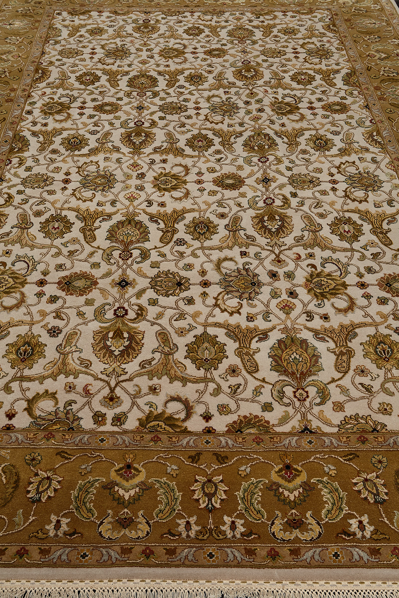 Более пяти веков назад в городе Агра зародилась знаменитая индийская школа ковроткачества, прославившаяся не меньше, чем расположенный здесь же Тадж-Махал. Мощное персидское влияние, помноженное на местный колорит, привело к появлению оригинальных орнаментов с богатыми растительными узорами — причудливым цветам, ветвям и листьям, разбросанным по всему полю ковра.