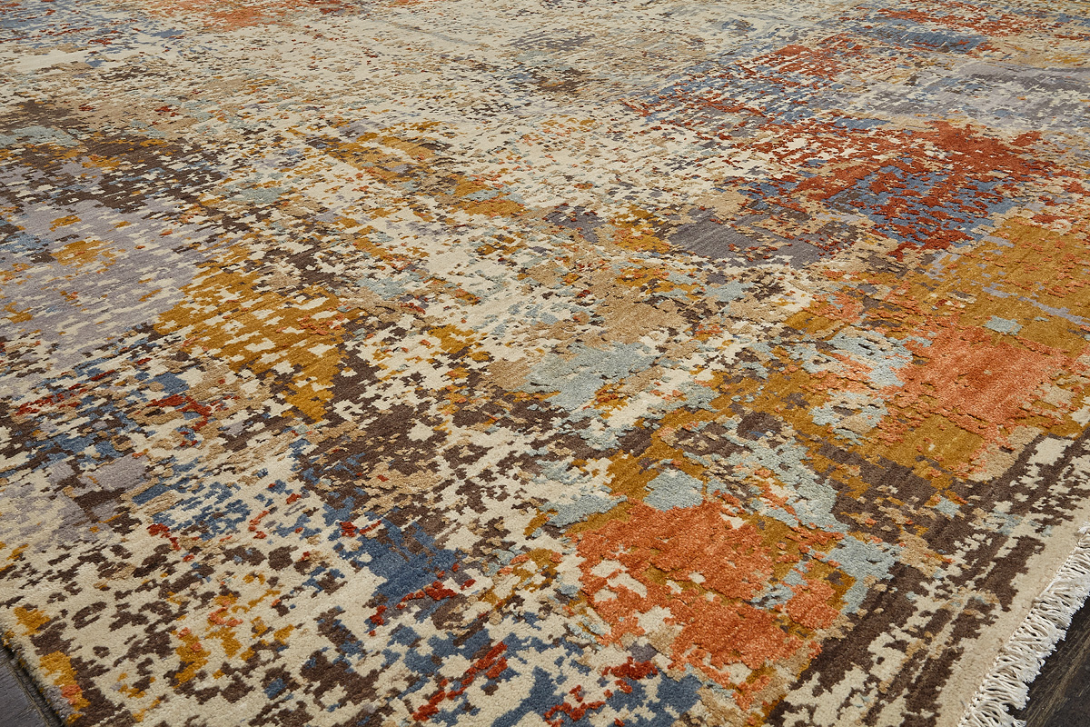 Дизайн ковров напоминает современные полотна художников-абстракционистов и производит столь же яркое и незабываемое впечатление в интерьере. Живописный эффект и необычная фактура зависят от выбора материала: натуральной шерсти, шёлка и от их сочетаний друг с другом. Ковры ткутся вручную в лучших мастерских Индии и Пакистана.