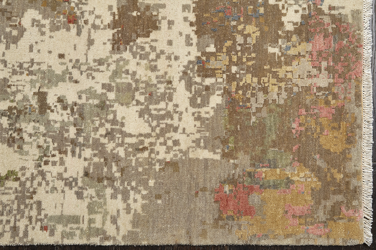 Дизайн ковров напоминает современные полотна художников-абстракционистов и производит столь же яркое и незабываемое впечатление в интерьере. Живописный эффект и необычная фактура зависят от выбора материала: натуральной шерсти, шёлка и от их сочетаний друг с другом. Ковры ткутся вручную в лучших мастерских Индии и Пакистана.