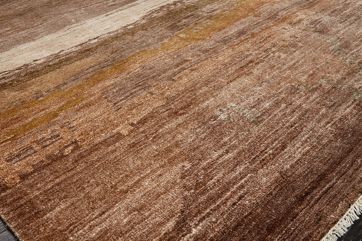 Дизайн ковров напоминает современные полотна художников-абстракционистов и производит столь же яркое и незабываемое впечатление в интерьере. Живописный эффект и необычная фактура зависят от выбора материала: натуральной шерсти, шёлка и от их сочетаний друг с другом. Ковры ткутся вручную в лучших мастерских Индии и Пакистана.