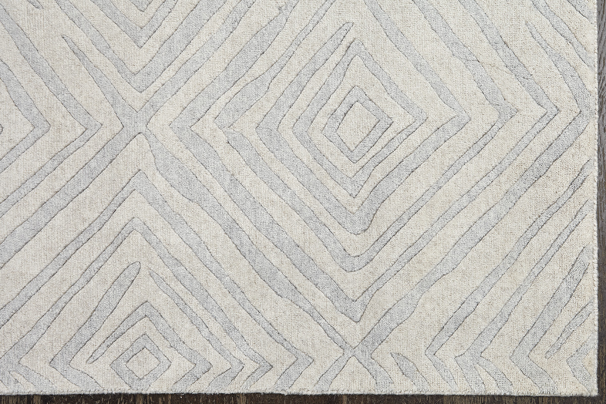 Крупные рисунки в виде линий и фигур на фактурной поверхности ковра превращаются в выразительные композиции. Они акцентируют на себе внимание и добавляют динамики в современный интерьер. Комбинации разных фигур и повторяющийся орнамент задают ритмическую основу пространству, привносят в него оригинальные оптические иллюзии.