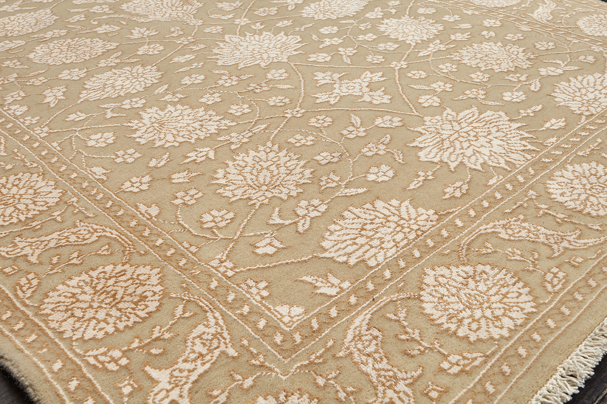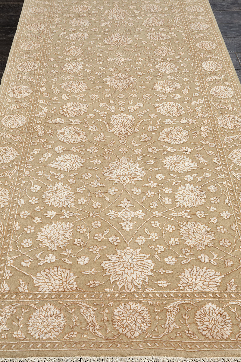 Каждый ковер в этой коллекции соткан вручную из шерсти и арт шёлка опытными индийскими мастерами.