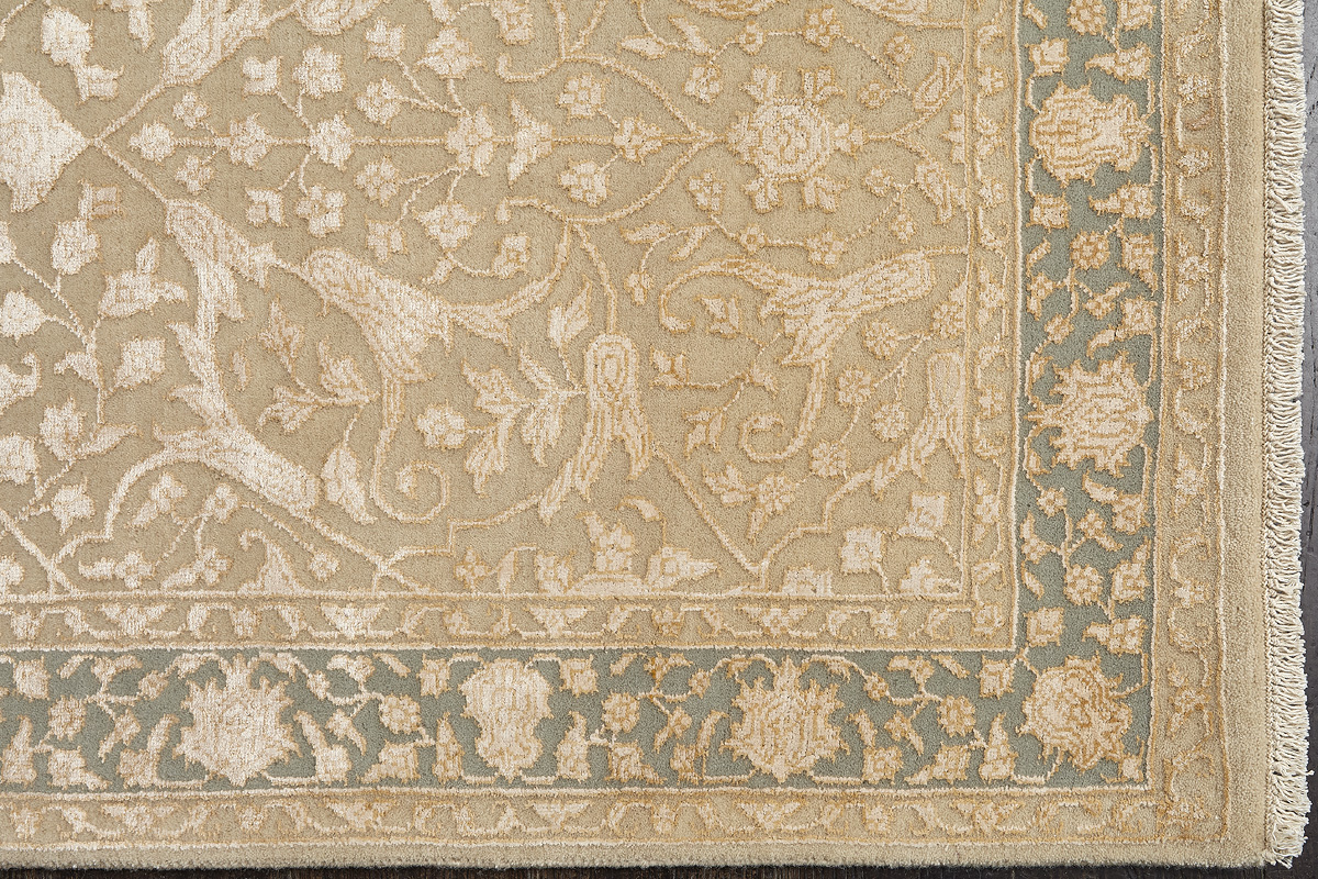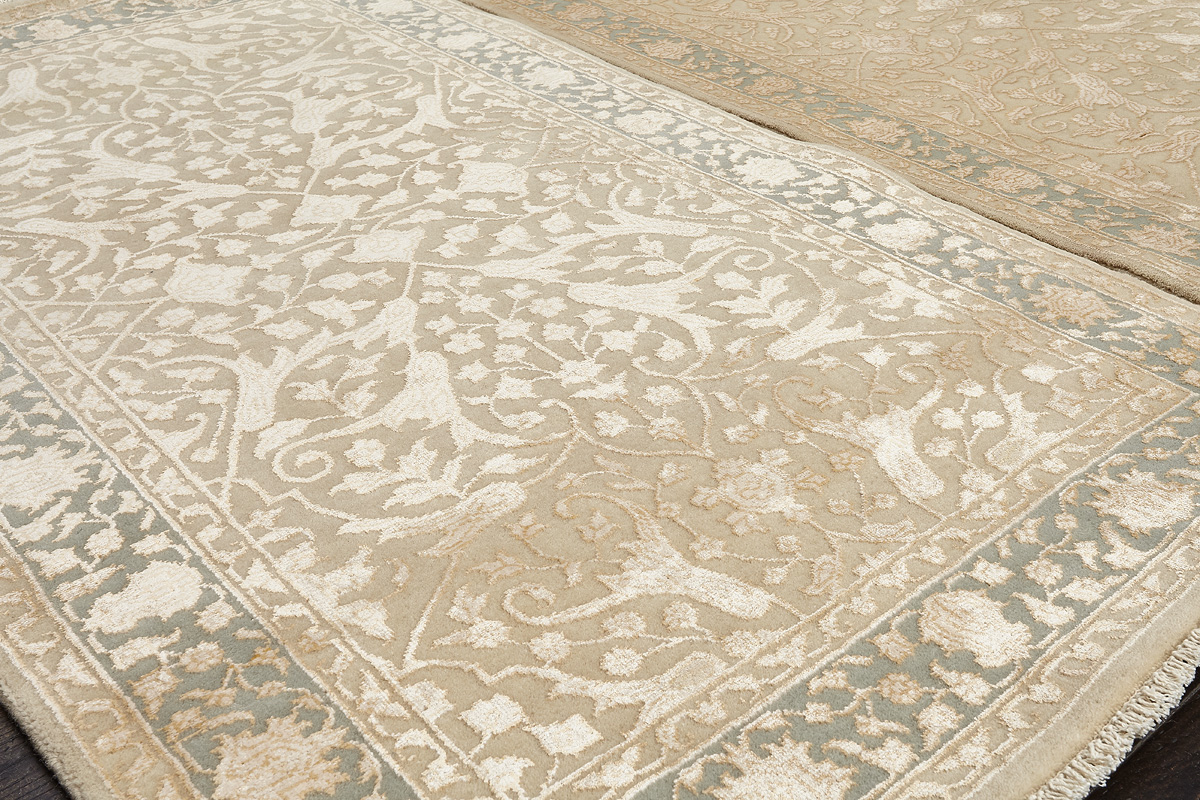 Каждый ковер в этой коллекции соткан вручную из шерсти и арт шёлка опытными индийскими мастерами.