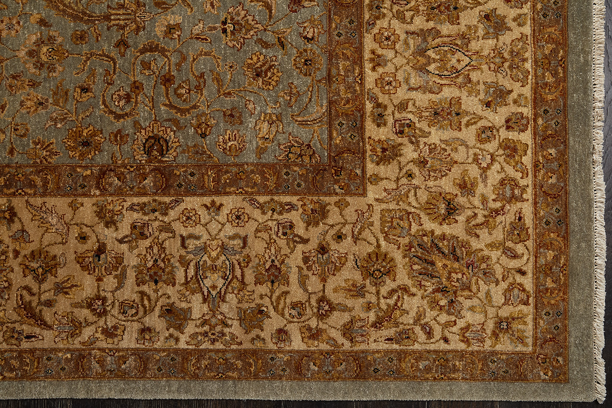 Более пяти веков назад в городе Агра зародилась знаменитая индийская школа ковроткачества, прославившаяся не меньше, чем расположенный здесь же Тадж-Махал. Мощное персидское влияние, помноженное на местный колорит, привело к появлению оригинальных орнаментов с богатыми растительными узорами — причудливым цветам, ветвям и листьям, разбросанным по всему полю ковра.