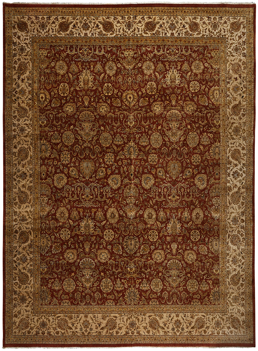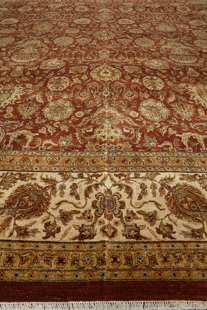 Более пяти веков назад в городе Агра зародилась знаменитая индийская школа ковроткачества, прославившаяся не меньше, чем расположенный здесь же Тадж-Махал. Мощное персидское влияние, помноженное на местный колорит, привело к появлению оригинальных орнаментов с богатыми растительными узорами — причудливым цветам, ветвям и листьям, разбросанным по всему полю ковра.