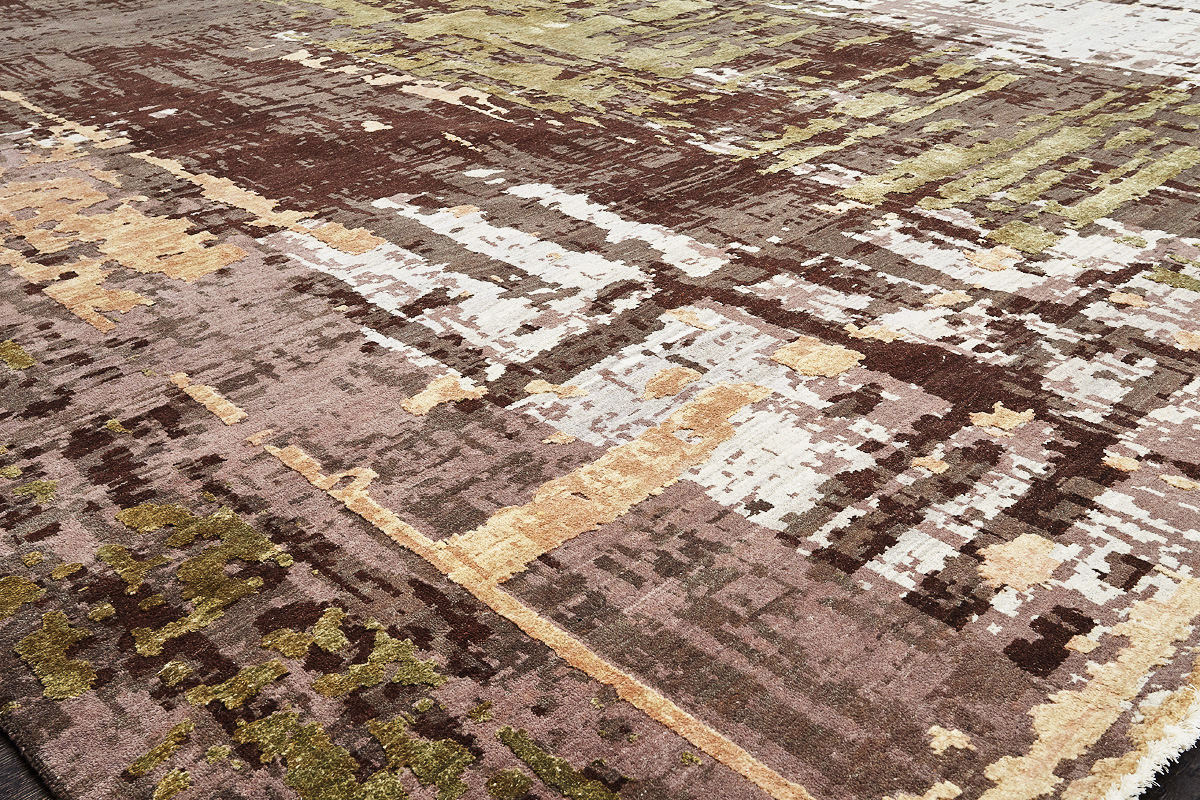 Дизайн ковров напоминает современные полотна художников-абстракционистов и производит столь же яркое и незабываемое впечатление в интерьере. Живописный эффект и необычная фактура зависят от выбора материала: натуральной шерсти, шёлка и от их сочетаний друг с другом. Ковры ткутся вручную в лучших мастерских Индии и Пакистана.