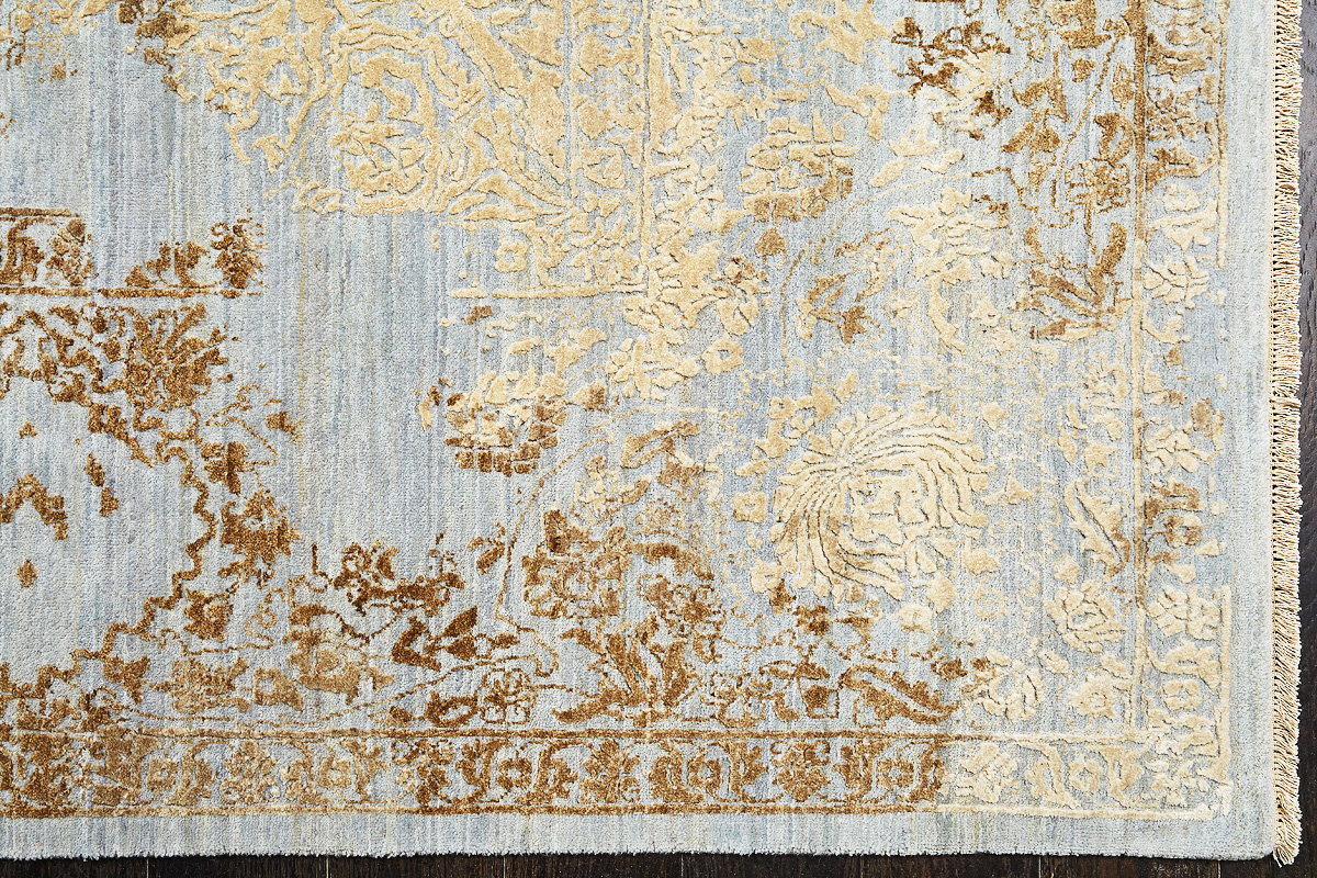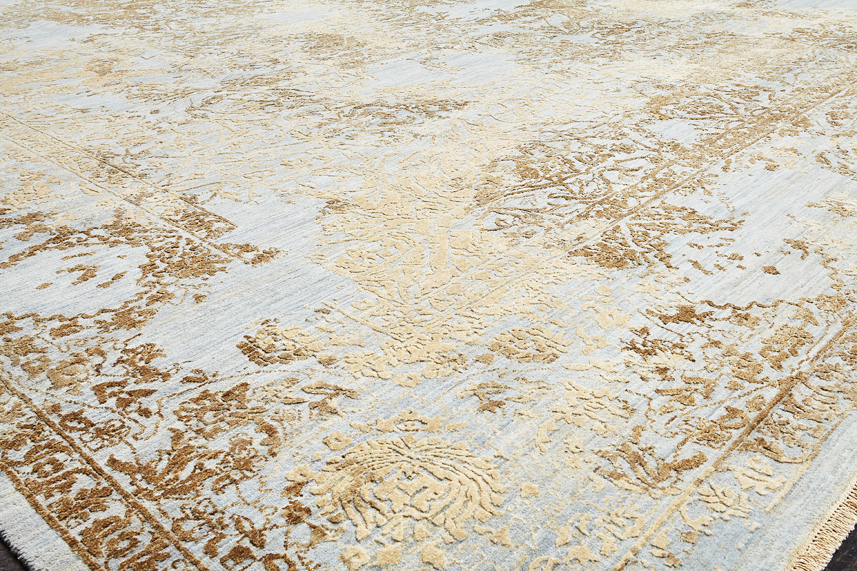 Такой эффект достигается за счет специальной техники плетения, а также обработки, которой подвергают ковры, чтобы они выглядели как антикварные — то есть дорого, элегантно и модно.