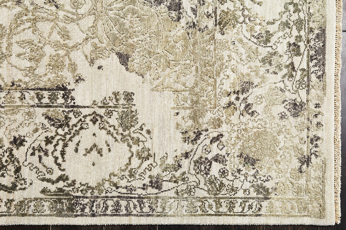 Время и природа — два главных стержня. Впечатление такое, что краски словно стёрлись, а если они и сохраняют яркость, то рисунок сохранился не весь, какие‑то фрагменты утрачены — такова типология этого столь актуального сегодня ковра ручной работы из коллекции illusion.