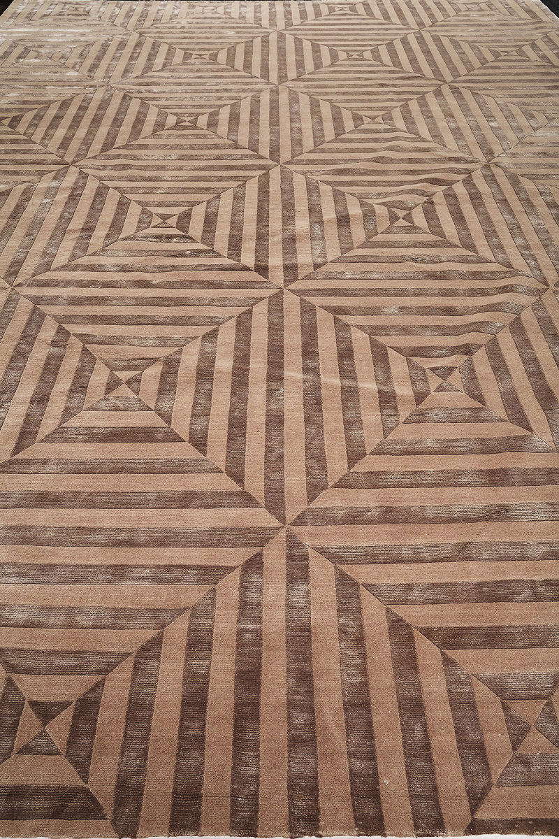 Крупные рисунки в виде линий и фигур на фактурной поверхности ковра превращаются в выразительные композиции. Они акцентируют на себе внимание и добавляют динамики в современный интерьер. Комбинации разных фигур и повторяющийся орнамент задают ритмическую основу пространству, привносят в него оригинальные оптические иллюзии.