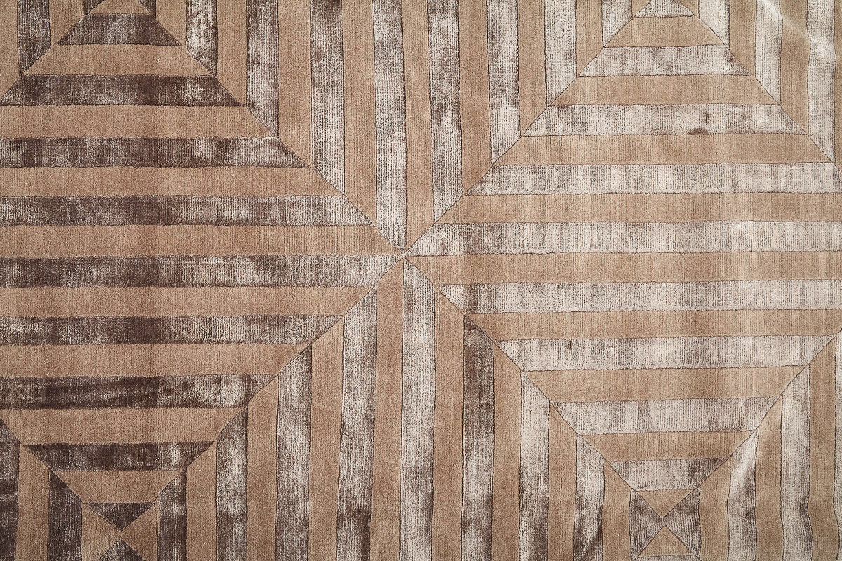Крупные рисунки в виде линий и фигур на фактурной поверхности ковра превращаются в выразительные композиции. Они акцентируют на себе внимание и добавляют динамики в современный интерьер. Комбинации разных фигур и повторяющийся орнамент задают ритмическую основу пространству, привносят в него оригинальные оптические иллюзии.