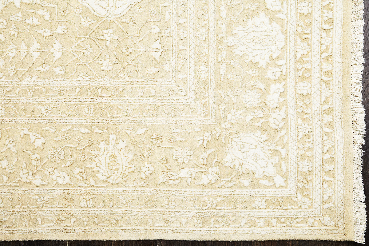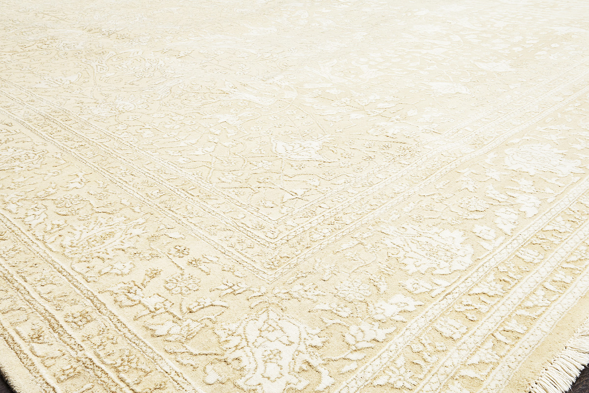 Каждый ковер в этой коллекции соткан вручную из шерсти и арт шёлка опытными индийскими мастерами.