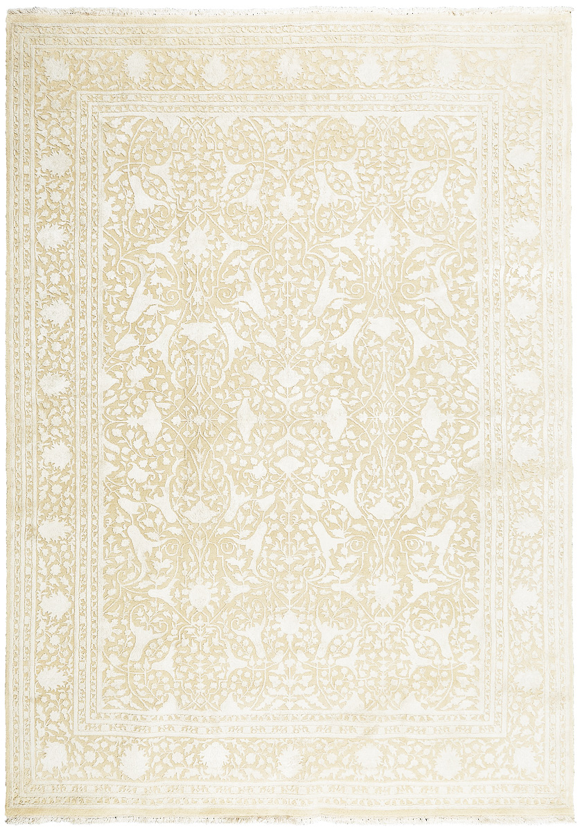Более пяти веков назад в городе Агра зародилась знаменитая индийская школа ковроткачества, прославившаяся не меньше, чем расположенный здесь же Тадж-Махал. Мощное персидское влияние, помноженное на местный колорит, привело к появлению оригинальных орнаментов с богатыми растительными узорами — причудливым цветам, ветвям и листьям, разбросанным по всему полю ковра.